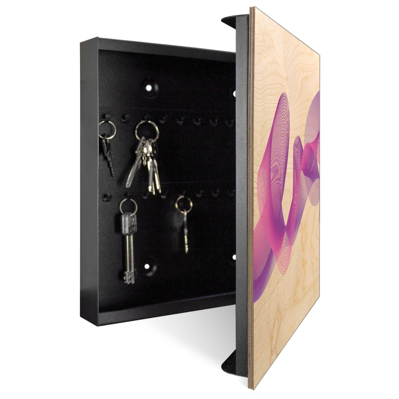Schlüsselkasten mit Holzfront - Design Schlüsselbox Motiv Fließende Kurven