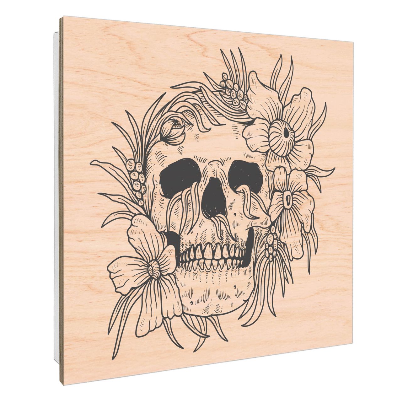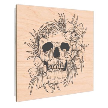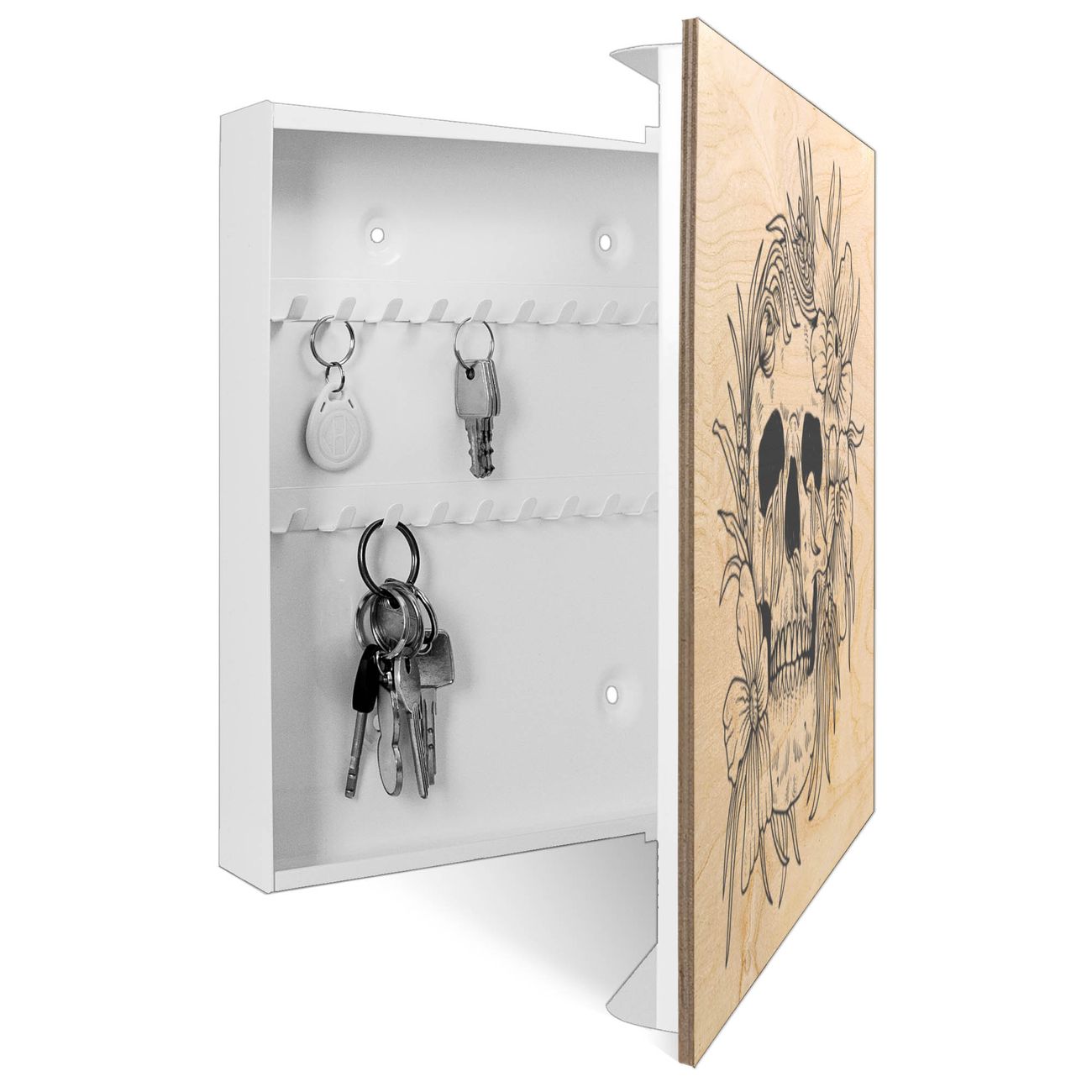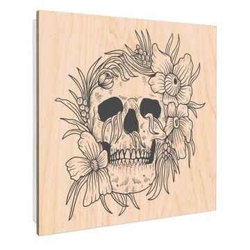Schlüsselkasten mit Holzfront - Design Schlüsselbox Motiv Floral Skull 2