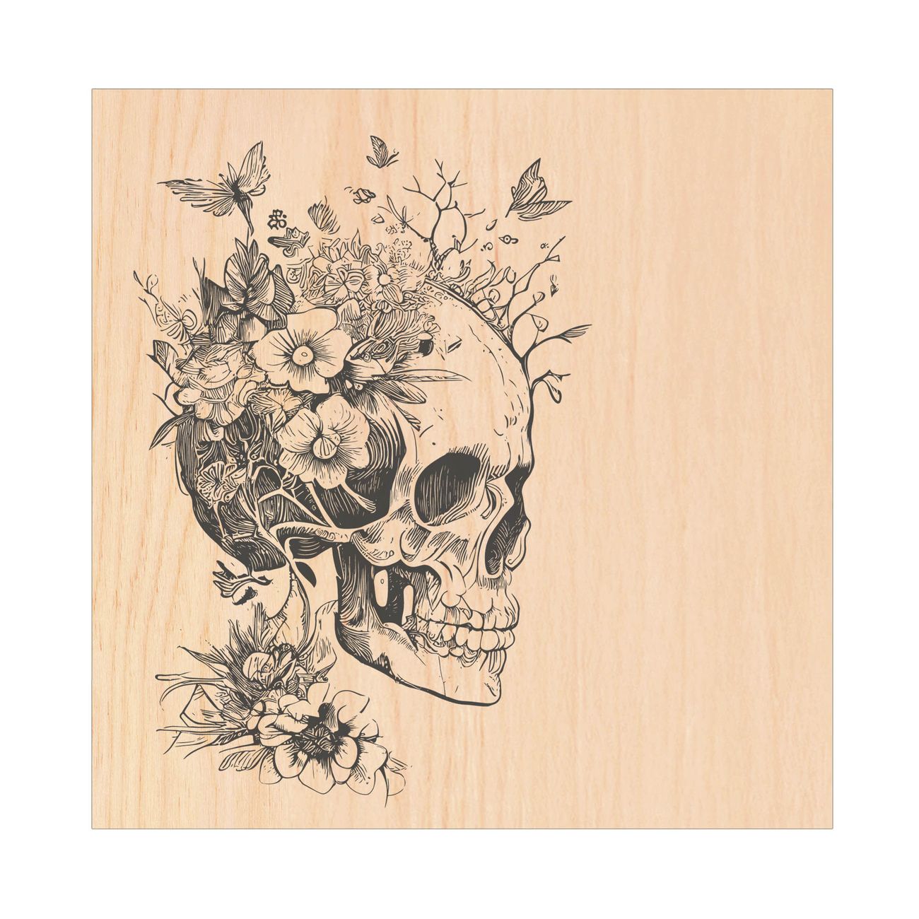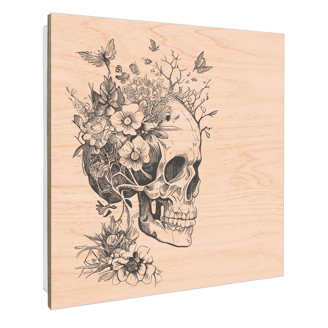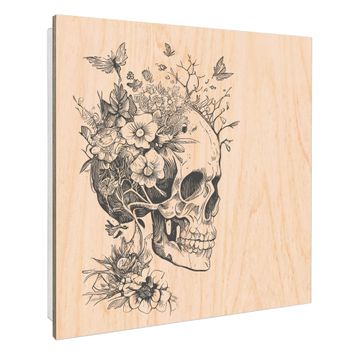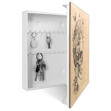 Schlüsselkasten mit Holzfront - Design Schlüsselbox Motiv Floral Skull
