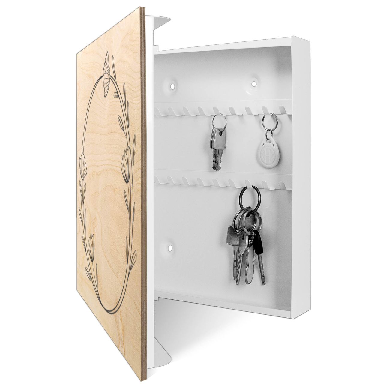 Schlüsselkasten mit Holzfront - Design Schlüsselbox Motiv Florale Eleganz 3