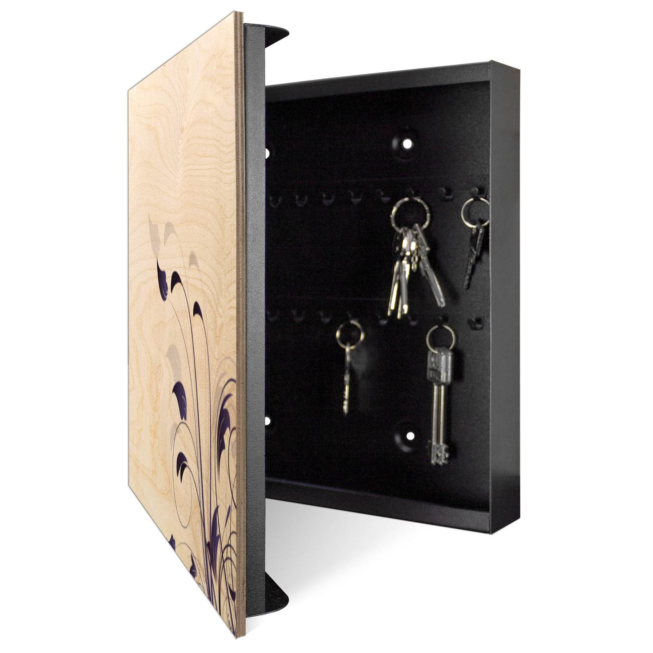 Schlüsselkasten mit Holzfront - Design Schlüsselbox Motiv Florale Eleganz