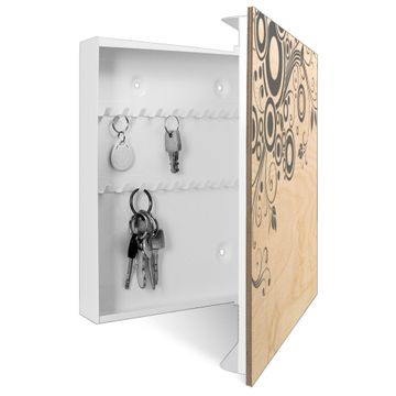 Schlüsselkasten mit Holzfront - Design Schlüsselbox Motiv Florale Swirls