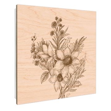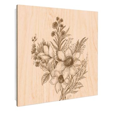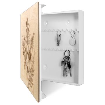 Schlüsselkasten mit Holzfront - Design Schlüsselbox Motiv Florale Zeichnung