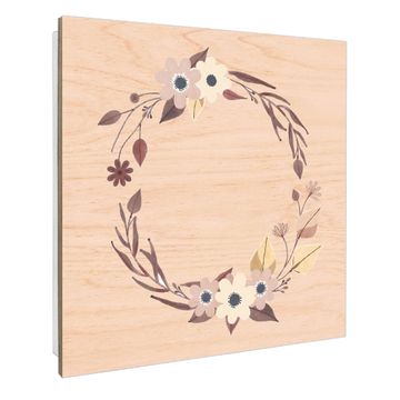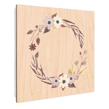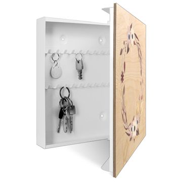 Schlüsselkasten mit Holzfront - Design Schlüsselbox Motiv Floraler Aquarellkranz