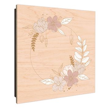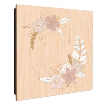 Schlüsselkasten mit Holzfront - Design Schlüsselbox Motiv Floraler Kranz