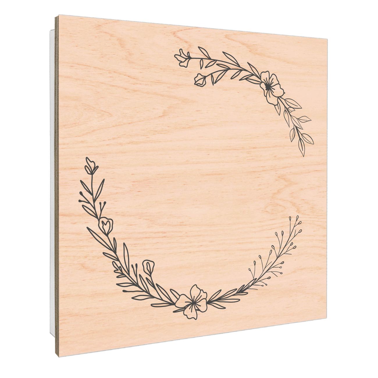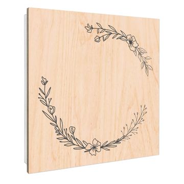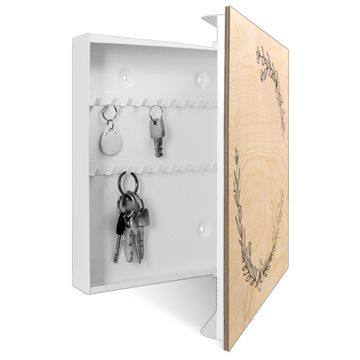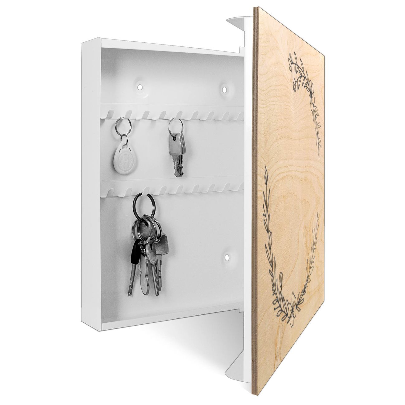 Schlüsselkasten mit Holzfront - Design Schlüsselbox Motiv Floraler Linienkranz