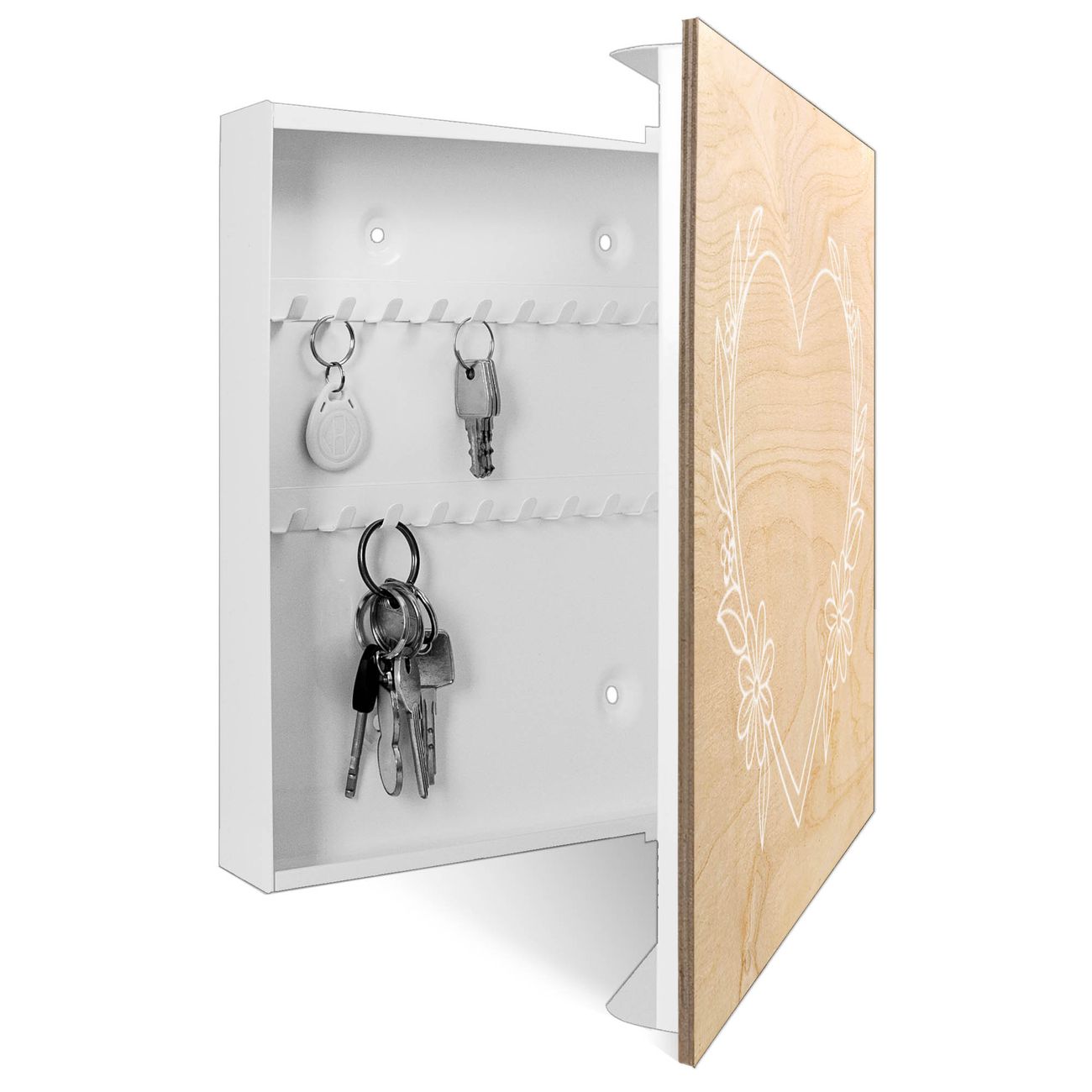 Schlüsselkasten mit Holzfront - Design Schlüsselbox Motiv Florales Herzdesign