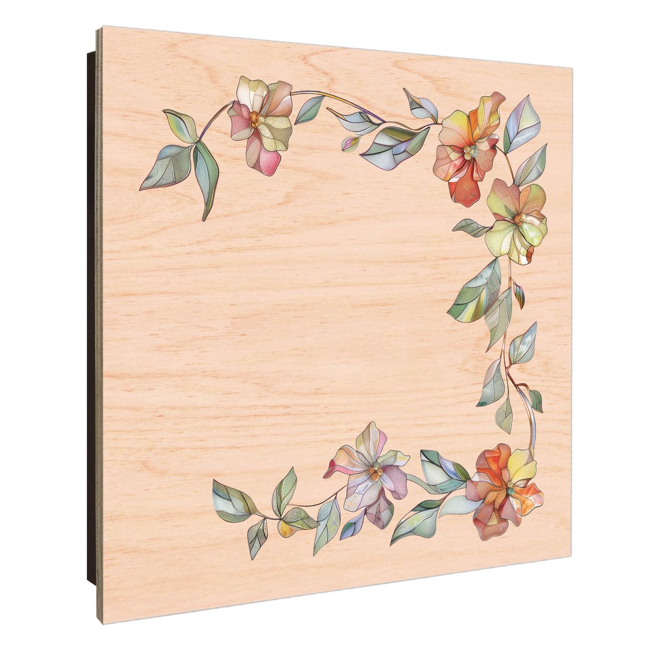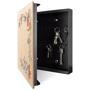 Schlüsselkasten mit Holzfront - Design Schlüsselbox Motiv Florales Kunstwerk