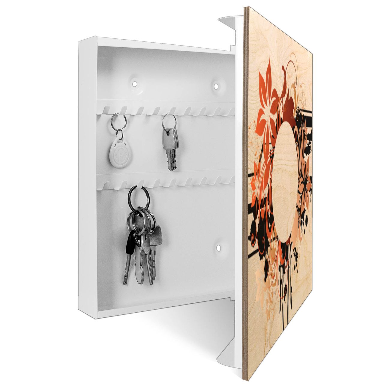 Schlüsselkasten mit Holzfront - Design Schlüsselbox Motiv Florales Ornament 2