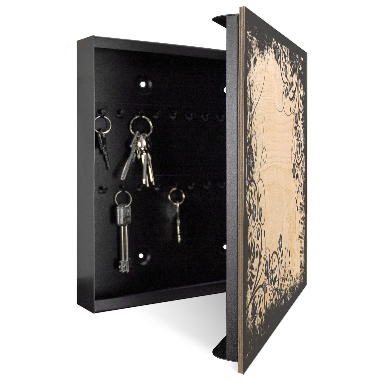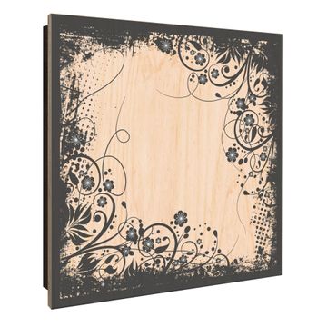 Schlüsselkasten mit Holzfront - Design Schlüsselbox Motiv Florales Schwarz-Weiß Muster