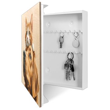 Bringe Ordnung und Eleganz in deinen Eingangsbereich mit dem banjado Schlüsselkasten Motiv Motiv Freundschaft in Fell. Die moderne Schlüsselbox kombiniert funktionales Design mit hochwertiger Verarbeitung und wird so zu einem echten Hingucker in Flur, Büro oder Ferienwohnung. ✅ Stilvolle Schlüsselaufbewahrung mit moderner Holzfront im Motiv Motiv Freundschaft in Fell Der Design-Schlüsselkasten Motiv Motiv Freundschaft in Fell bietet Platz für bis zu 50 Schlüssel, die auf 5 stabilen Reihen mit je 10 Haken übersichtlich verstaut werden. Mit seinen kompakten Maßen von 30 x 30 x 5 cm passt die Schlüsselbox perfekt auch in kleinere Räume. Der weiß lackierte Korpus mit dem Scharnier auf der linken Seite harmoniert mit der bedruckten Holzfront und fügt sich nahtlos in jedes Wohnambiente ein. Ob als Schlüsselorganizer für Zuhause oder als praktische Lösung für Büros, Praxen und Gewerbe - der banjado Schlüsselkasten sorgt für Ordnung und Übersicht. Durch die klare Strukturierung der Haken lassen sich auch viele Schlüssel problemlos verwalten. Die Schlüsselbox Motiv Motiv Freundschaft in Fell zur Wandmontage wird inklusive Befestigungsmaterial geliefert und ist schnell angebracht. So hast du deine Schlüssel jederzeit griffbereit und zugleich stilvoll verstaut. Mit diesem banjado Schlüsselkasten Motiv Motiv Freundschaft in Fell kombinierst du praktische Aufbewahrung mit stilvollem Wohndesign. Ob privat oder geschäftlich - die Schlüsselbox sorgt für mehr Ordnung, Übersicht und ein wohnliches Ambiente.Vorteile im Überblick