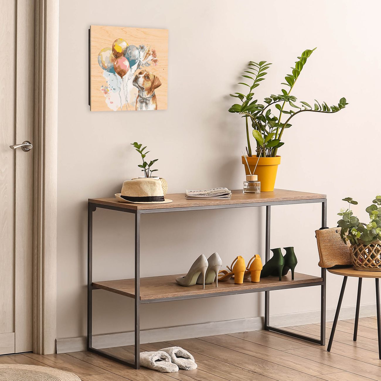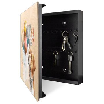 Schlüsselkasten mit Holzfront - Design Schlüsselbox Motiv Hund mit Ballons Aquarell