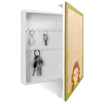 Schlüsselkasten mit Holzfront - Design Schlüsselbox Motiv Fröhlicher Affe