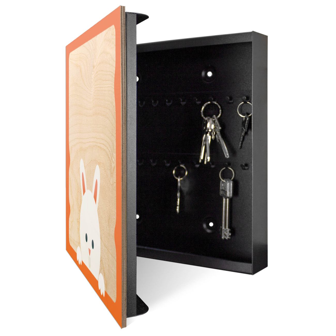 Schlüsselkasten mit Holzfront - Design Schlüsselbox Motiv Fröhlicher Ostern-Hase