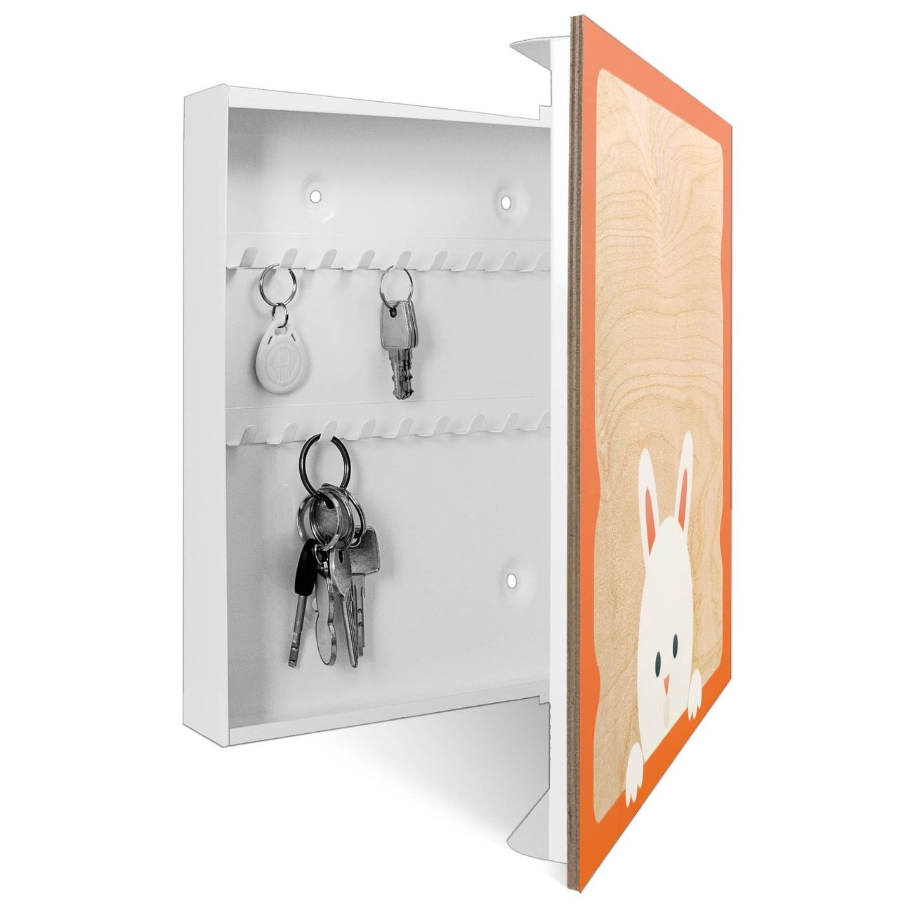 Schlüsselkasten mit Holzfront - Design Schlüsselbox Motiv Fröhlicher Ostern-Hase