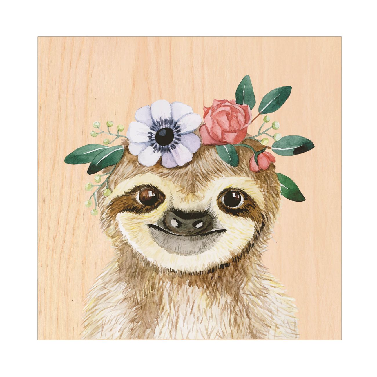 - Motiv: Fröhliches Faultier mit Blumenkranz Nr. 13456