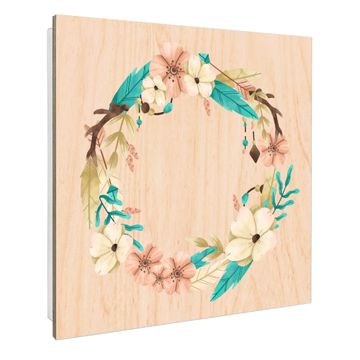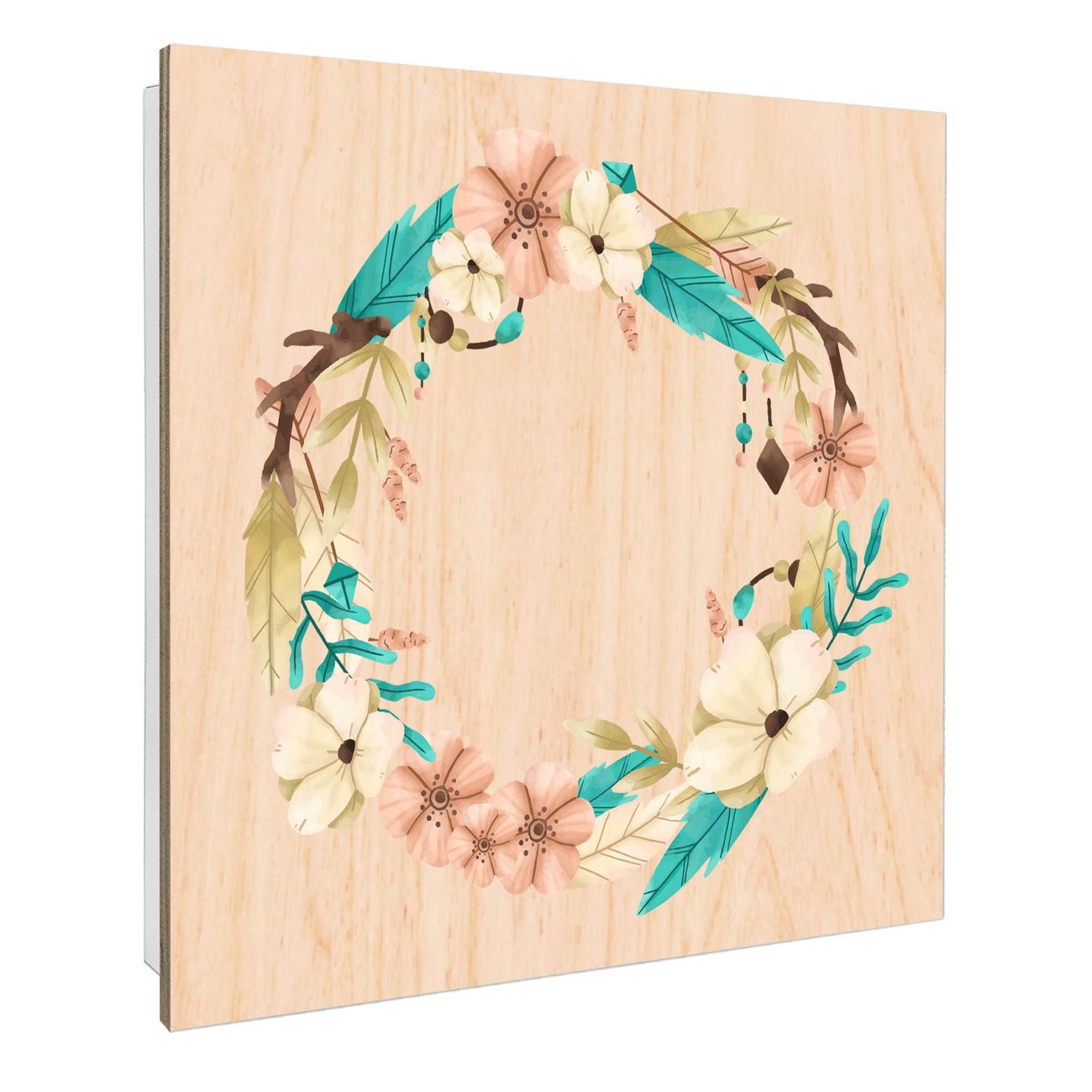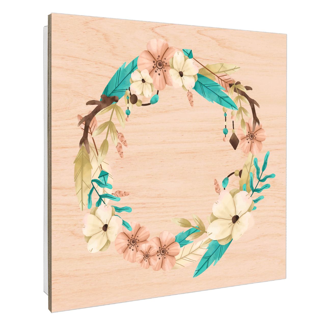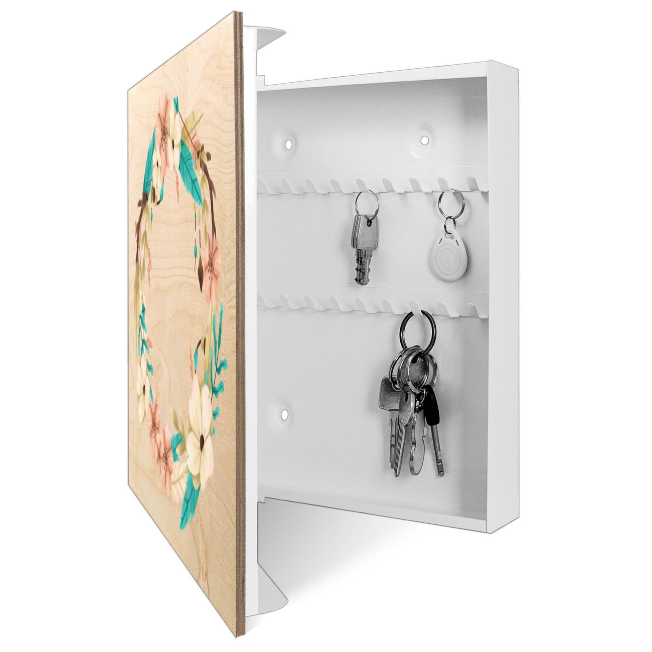 Schlüsselkasten mit Holzfront - Design Schlüsselbox Motiv Frühlingsblütenkranz