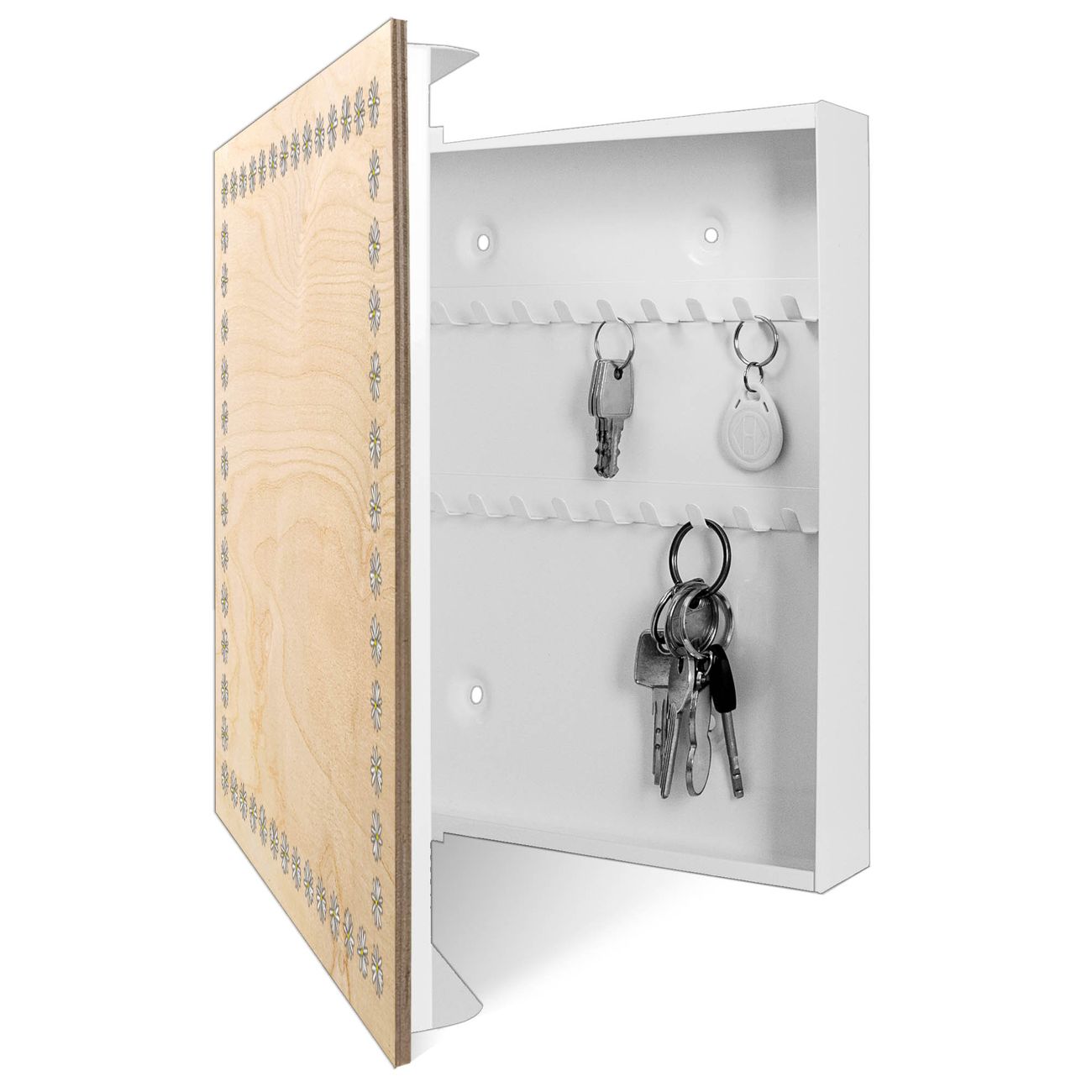 Schlüsselkasten mit Holzfront - Design Schlüsselbox Motiv Gänseblümchen-Rahmen