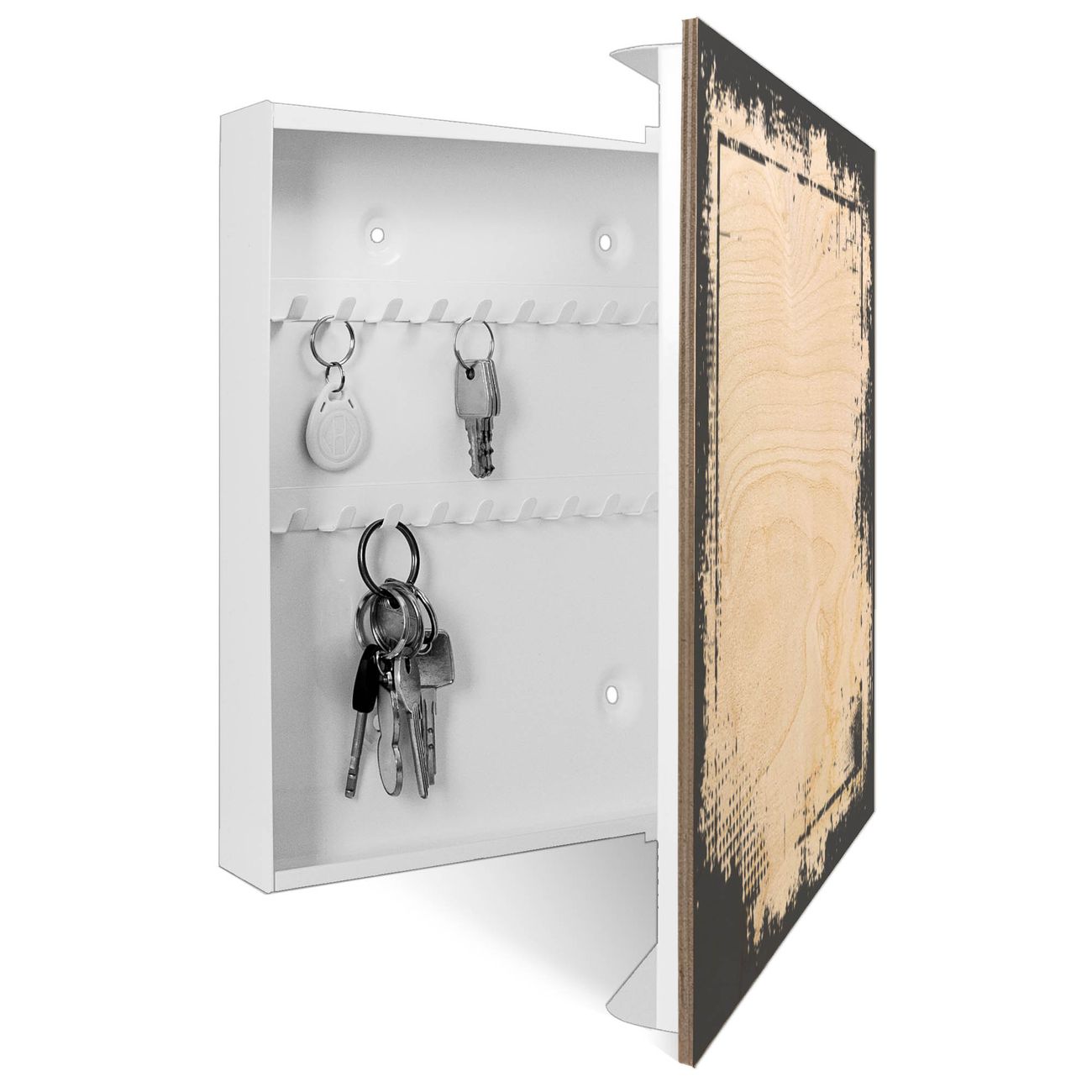 Schlüsselkasten mit Holzfront - Design Schlüsselbox Motiv Grunge-Rahmen