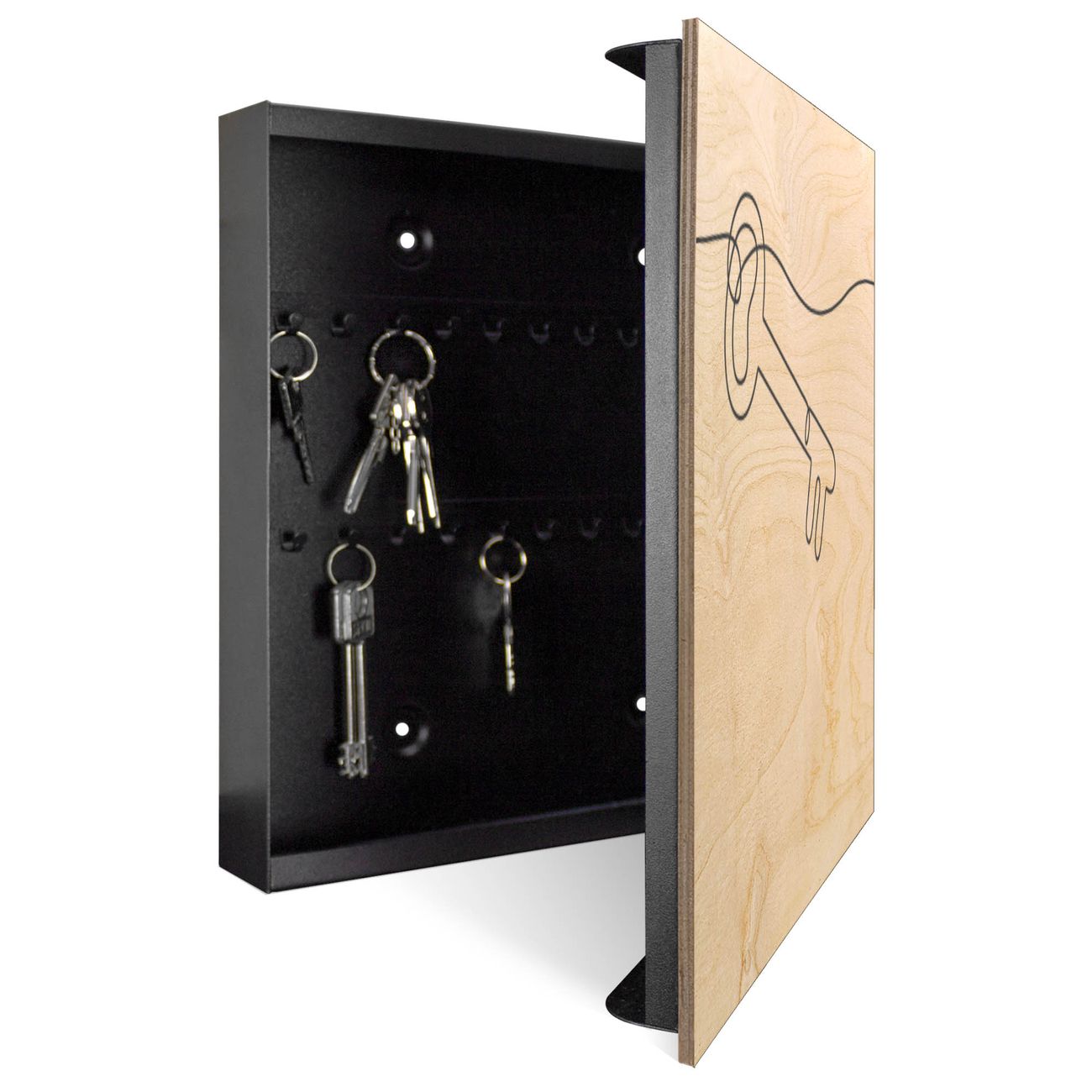 Schlüsselkasten mit Holzfront - Design Schlüsselbox Motiv Hausherr Schlüssel 2