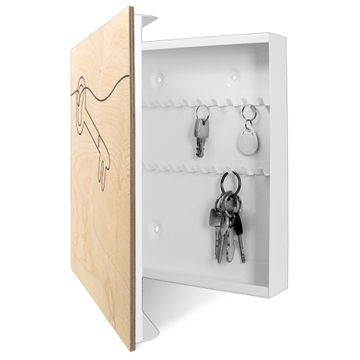 Schlüsselkasten mit Holzfront - Design Schlüsselbox Motiv Hausherr Schlüssel 2