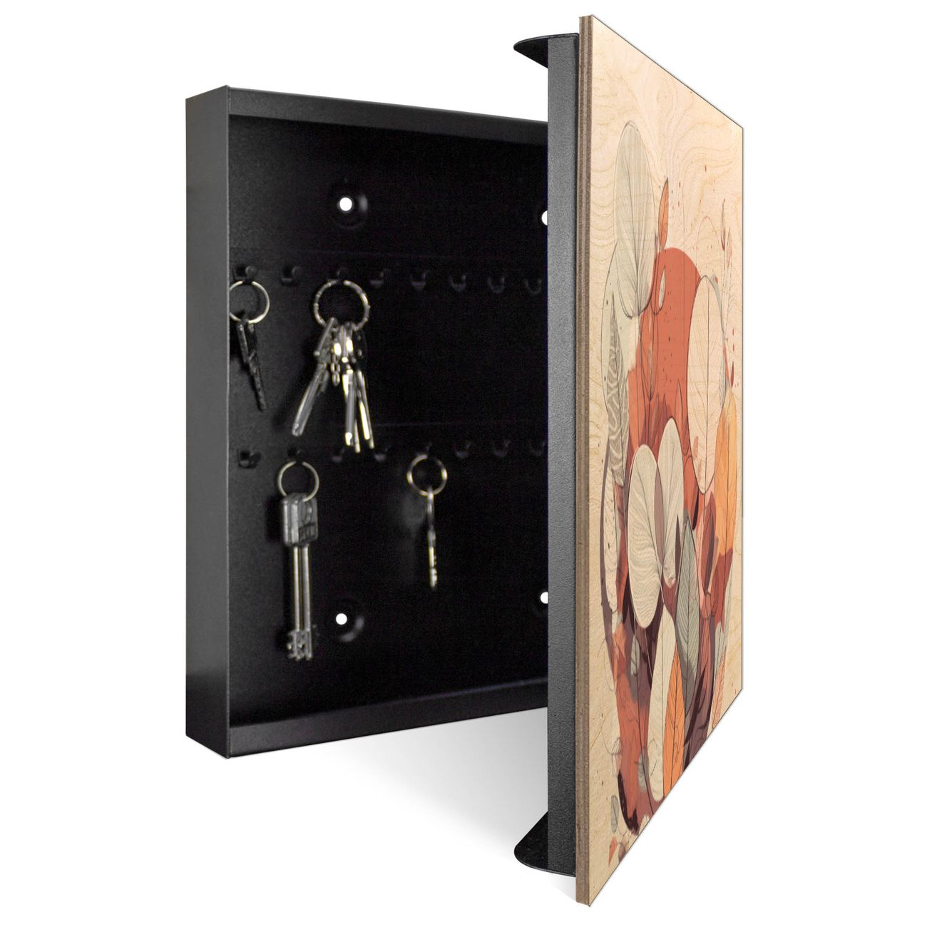Schlüsselkasten mit Holzfront - Design Schlüsselbox Motiv Herbstliche Blätterpracht