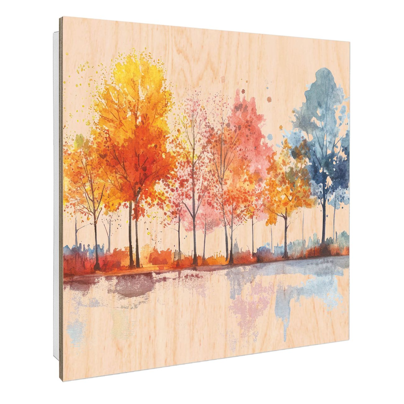 Schlüsselkasten mit Holzfront - Design Schlüsselbox Motiv Herbstlicher Baumzauber
