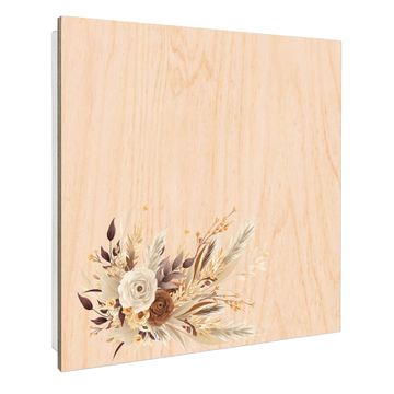 Schlüsselkasten mit Holzfront - Design Schlüsselbox Motiv Herbstlicher Blumenstrauß