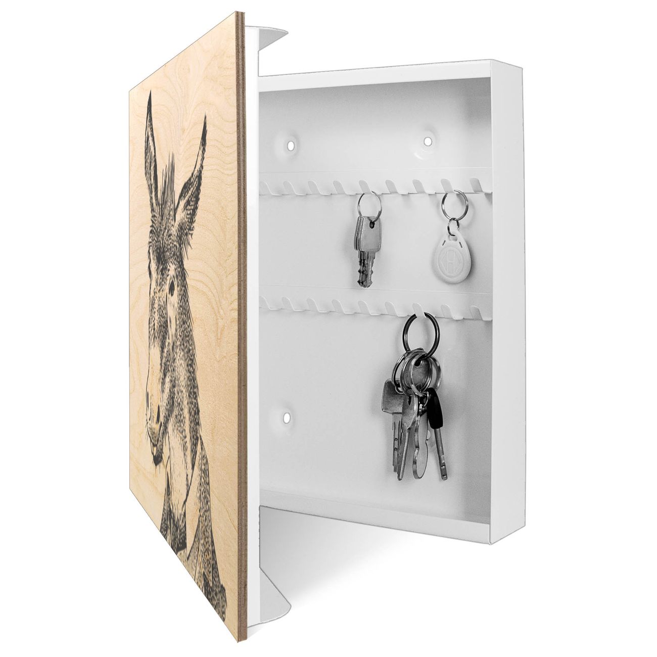 Schlüsselkasten mit Holzfront - Design Schlüsselbox Motiv Herr Esel 2