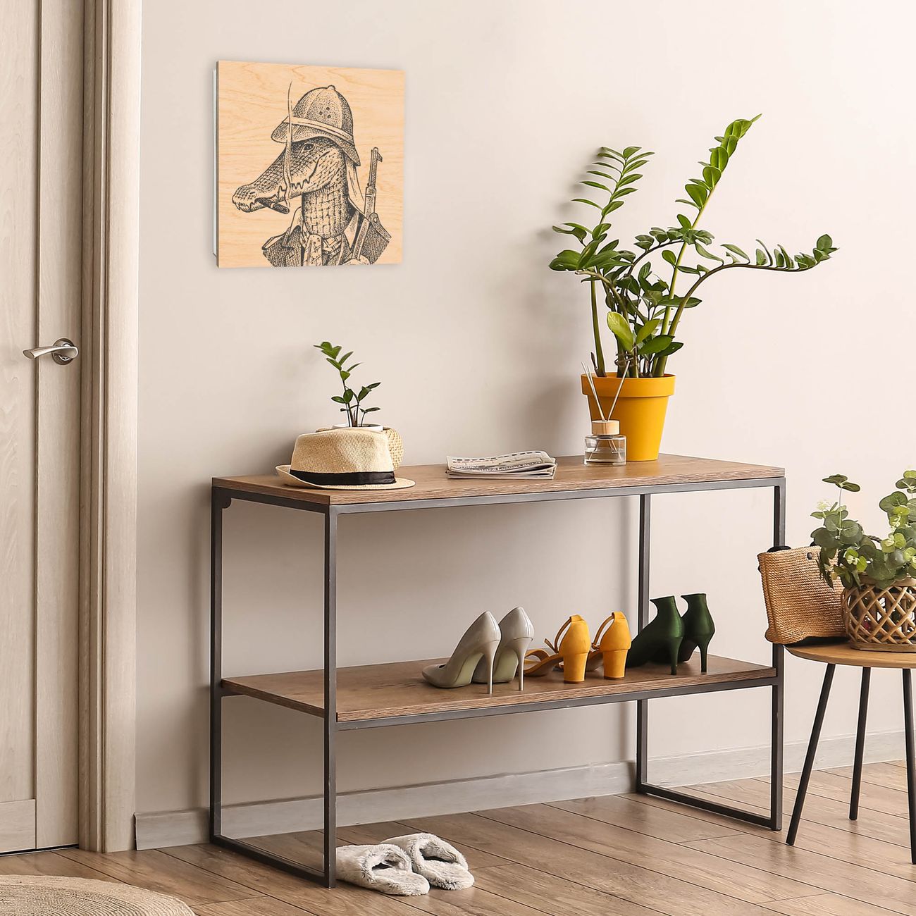 Schlüsselkasten mit Holzfront - Design Schlüsselbox Motiv Herr Krokodil 2