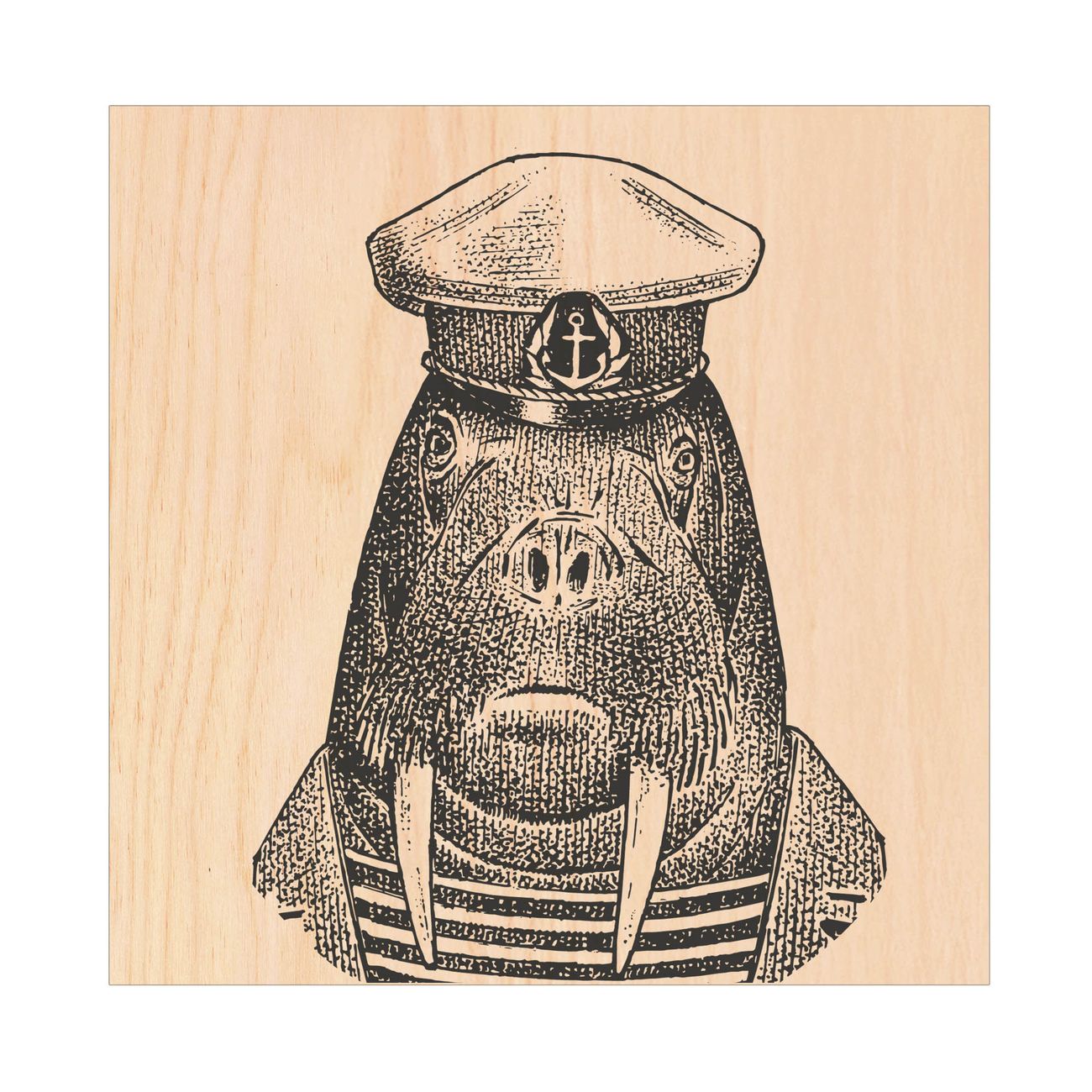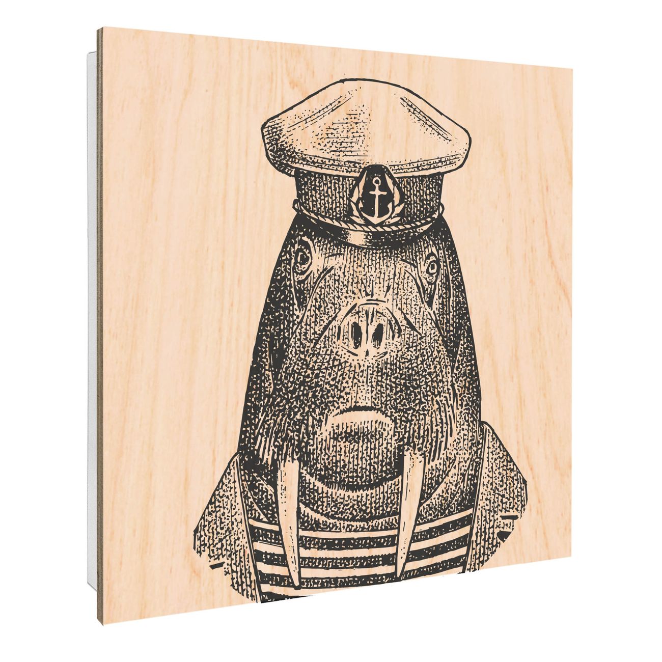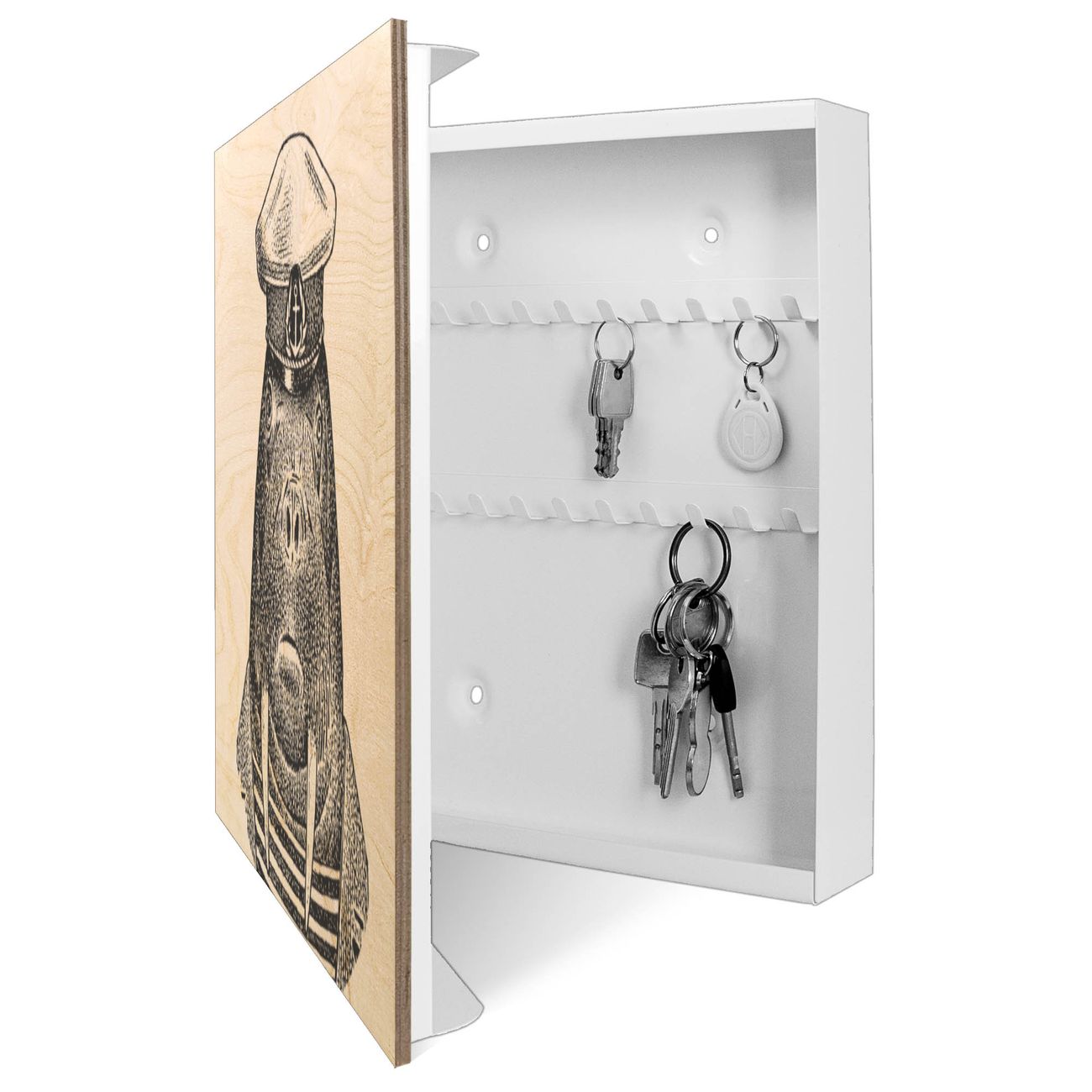 Schlüsselkasten mit Holzfront - Design Schlüsselbox Motiv Herr Walross 2