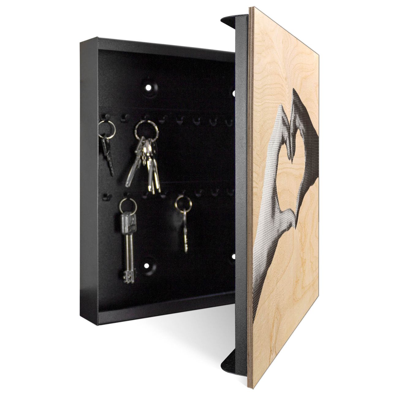 Schlüsselkasten mit Holzfront - Design Schlüsselbox Motiv Herzhände