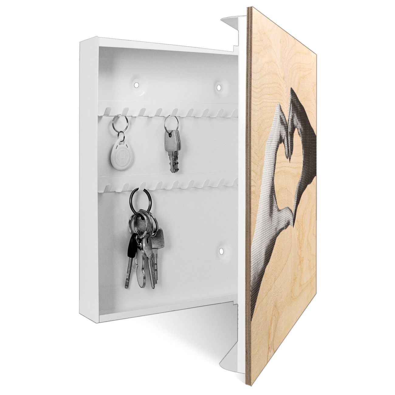 Schlüsselkasten mit Holzfront - Design Schlüsselbox Motiv Herzhände