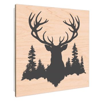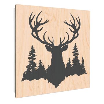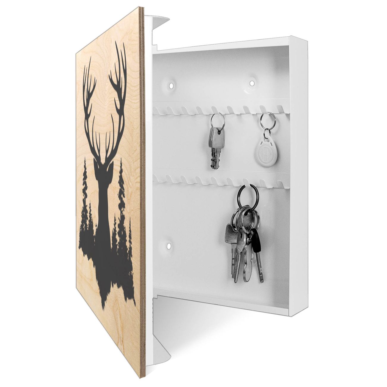 Schlüsselkasten mit Holzfront - Design Schlüsselbox Motiv Hirsch im Wald