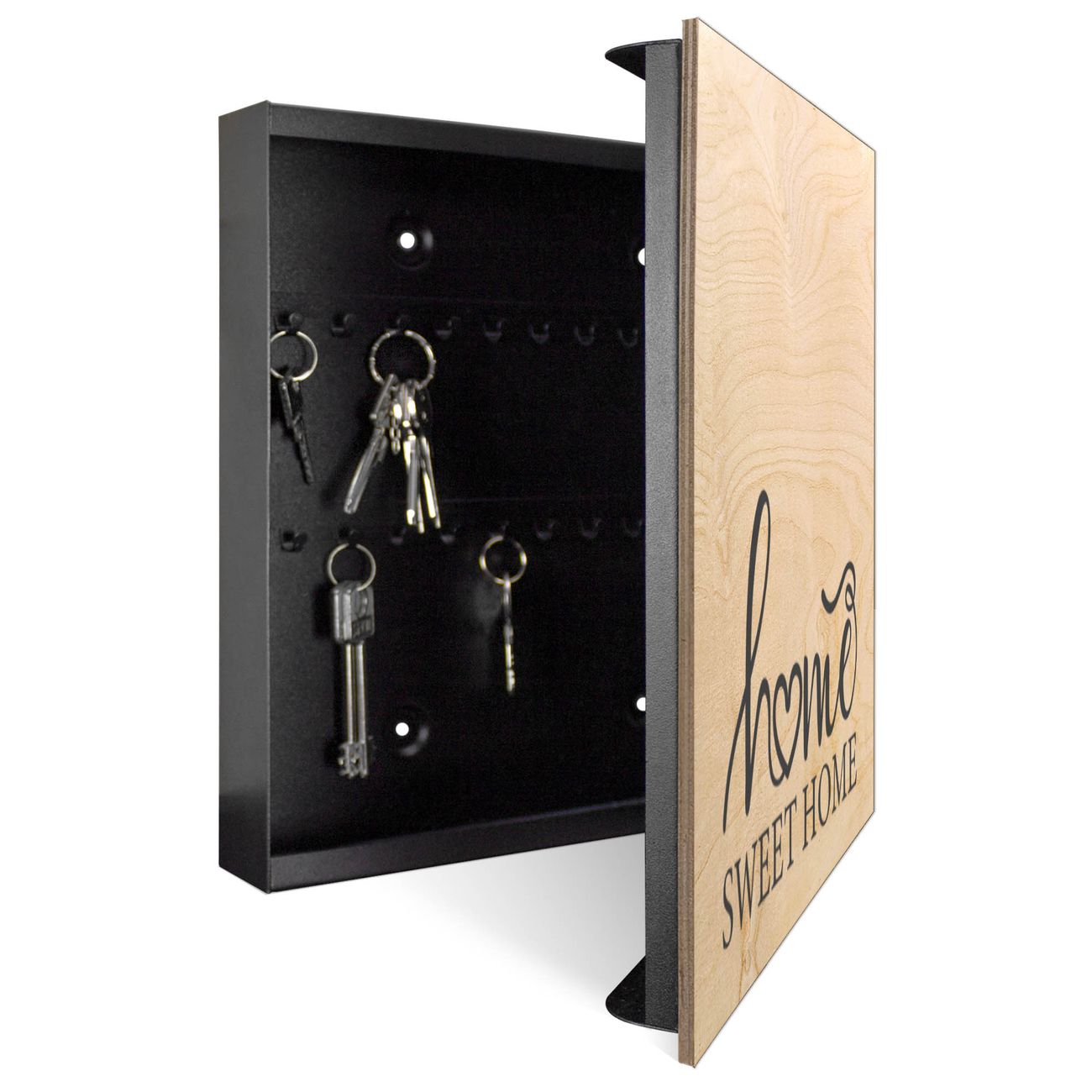 Schlüsselkasten mit Holzfront - Design Schlüsselbox Motiv Home Sweet Home Schriftzug