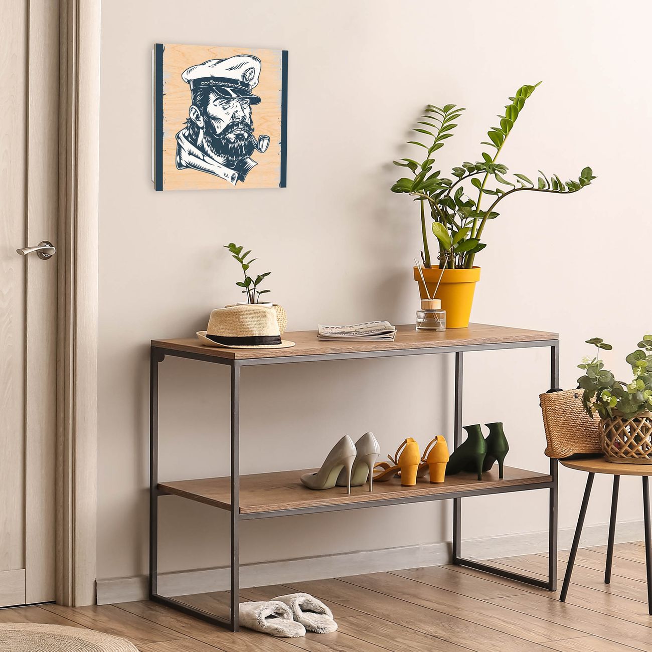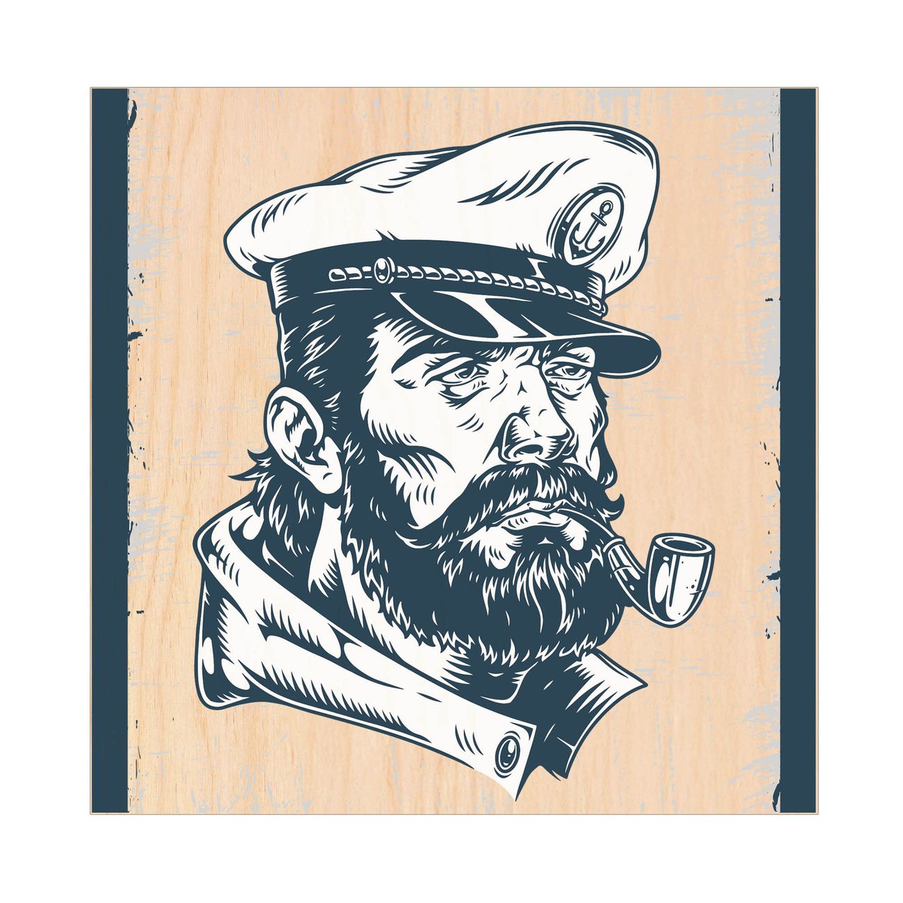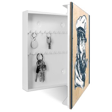 Schlüsselkasten mit Holzfront - Design Schlüsselbox Motiv Kapitän Portrait