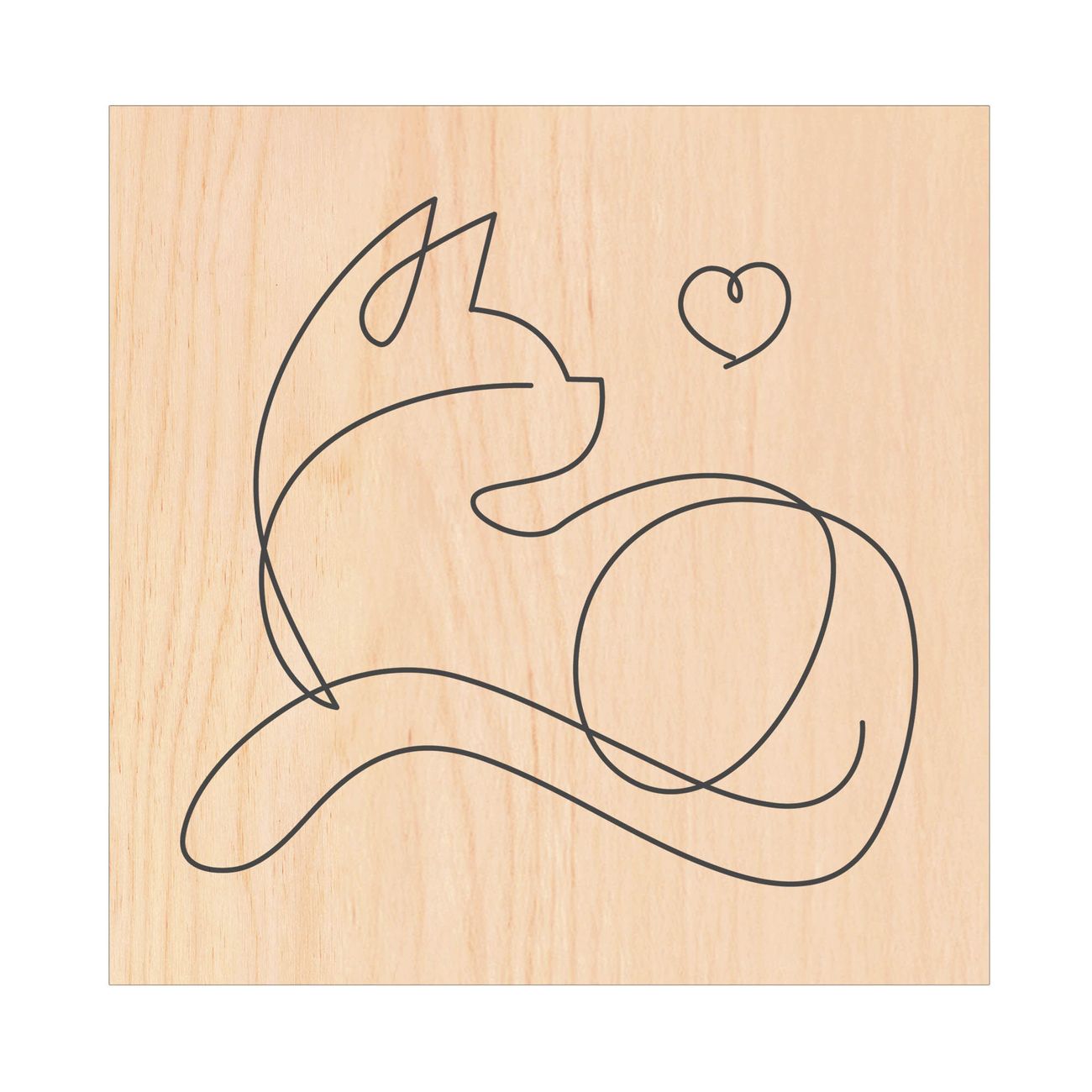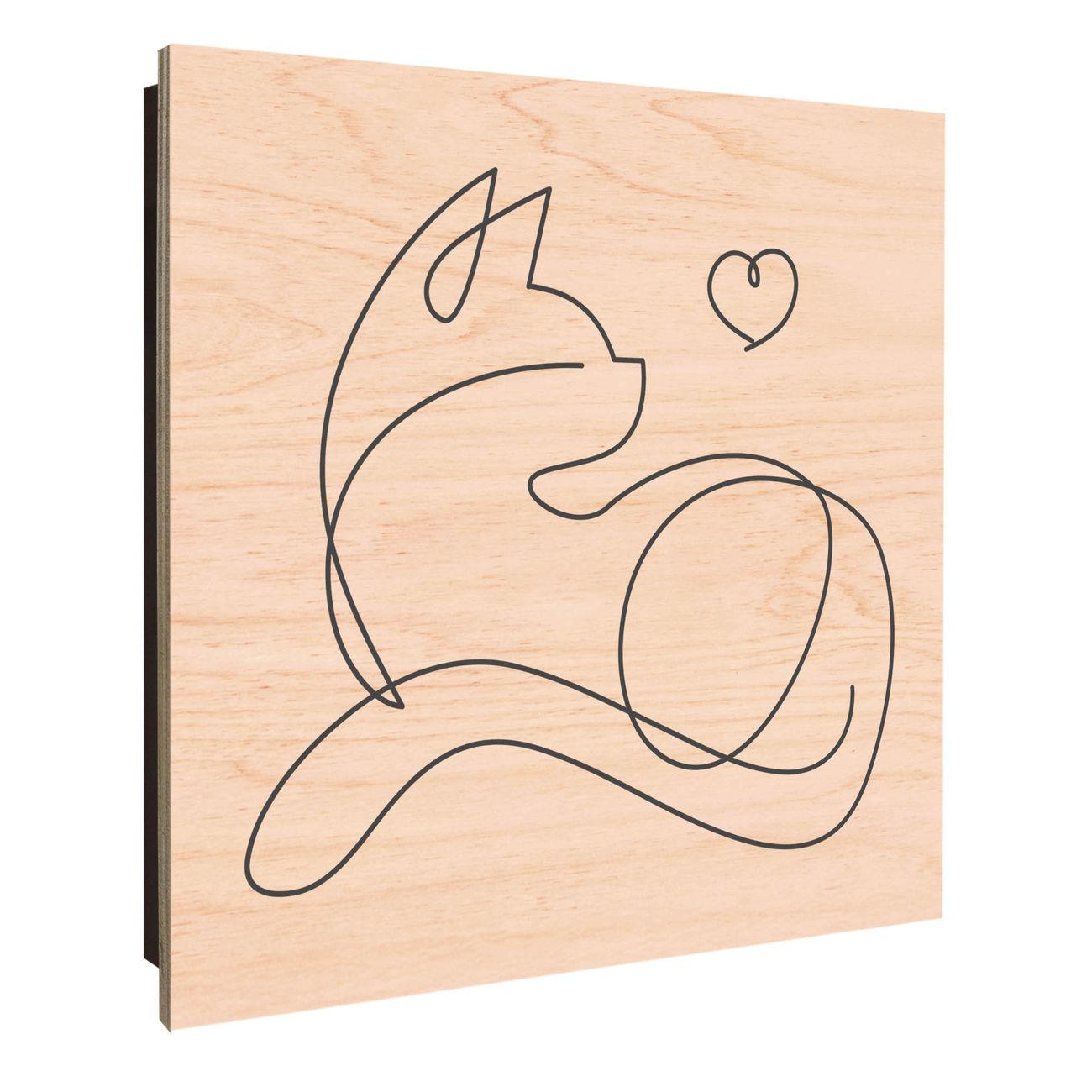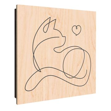 Schlüsselkasten mit Holzfront - Design Schlüsselbox Motiv Katze Lineart