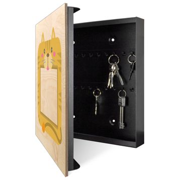 Schlüsselkasten mit Holzfront - Design Schlüsselbox Motiv Katze Bilderrahmen