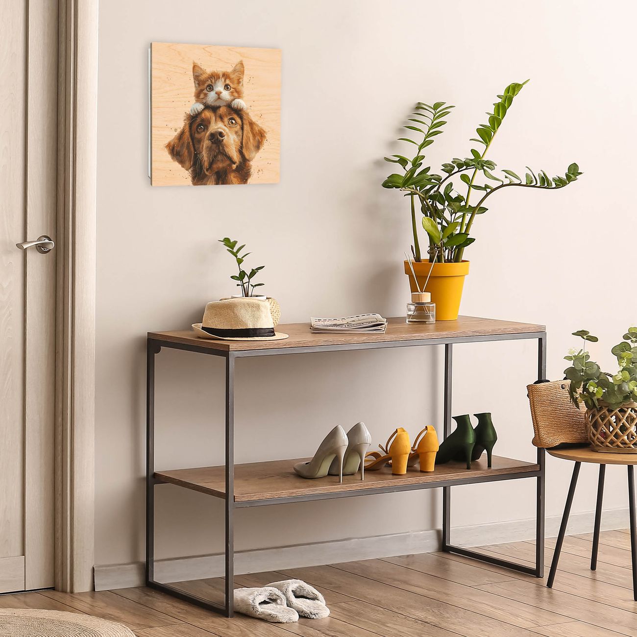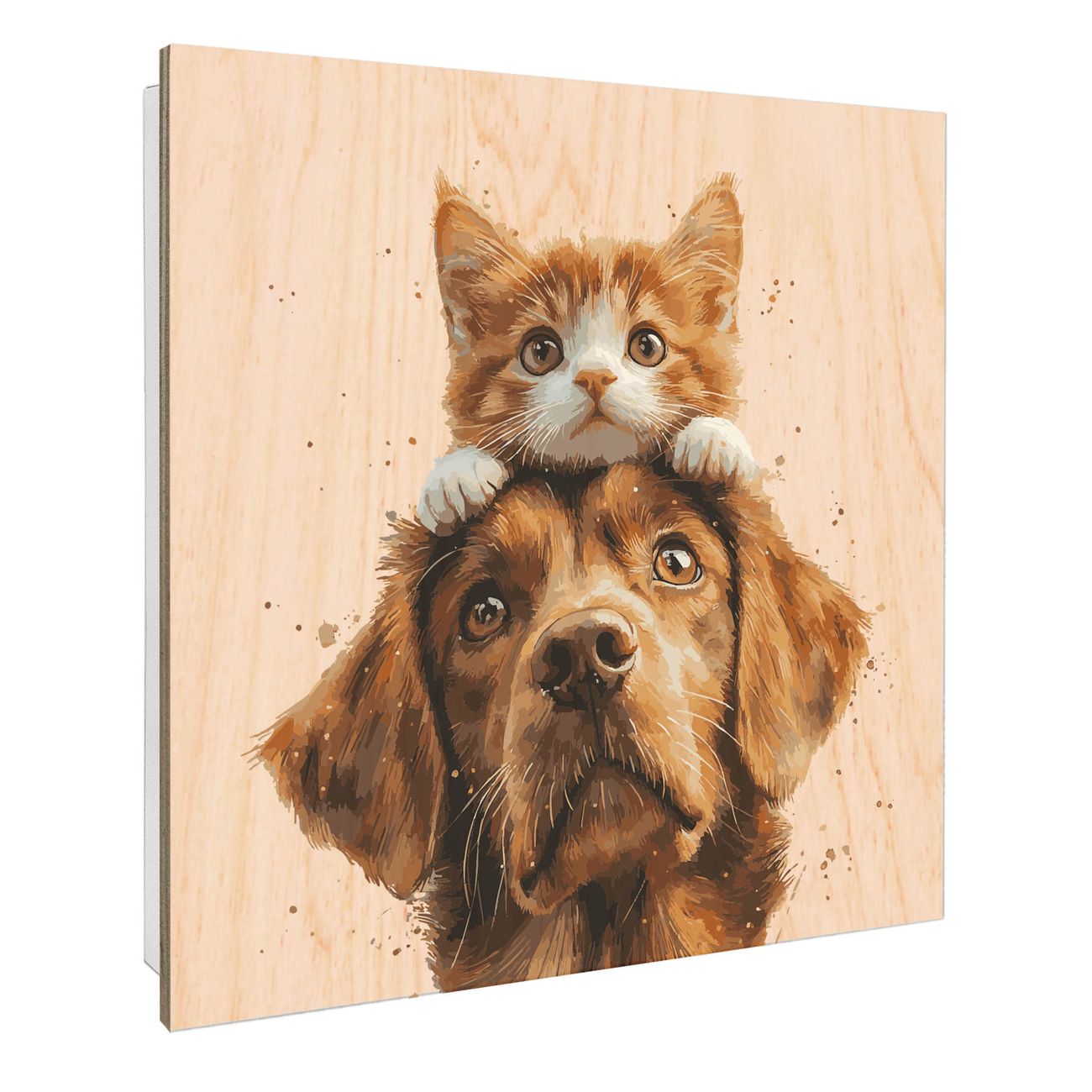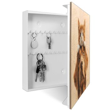 Schlüsselkasten mit Holzfront - Design Schlüsselbox Motiv Katzen- und Hundefreunde
