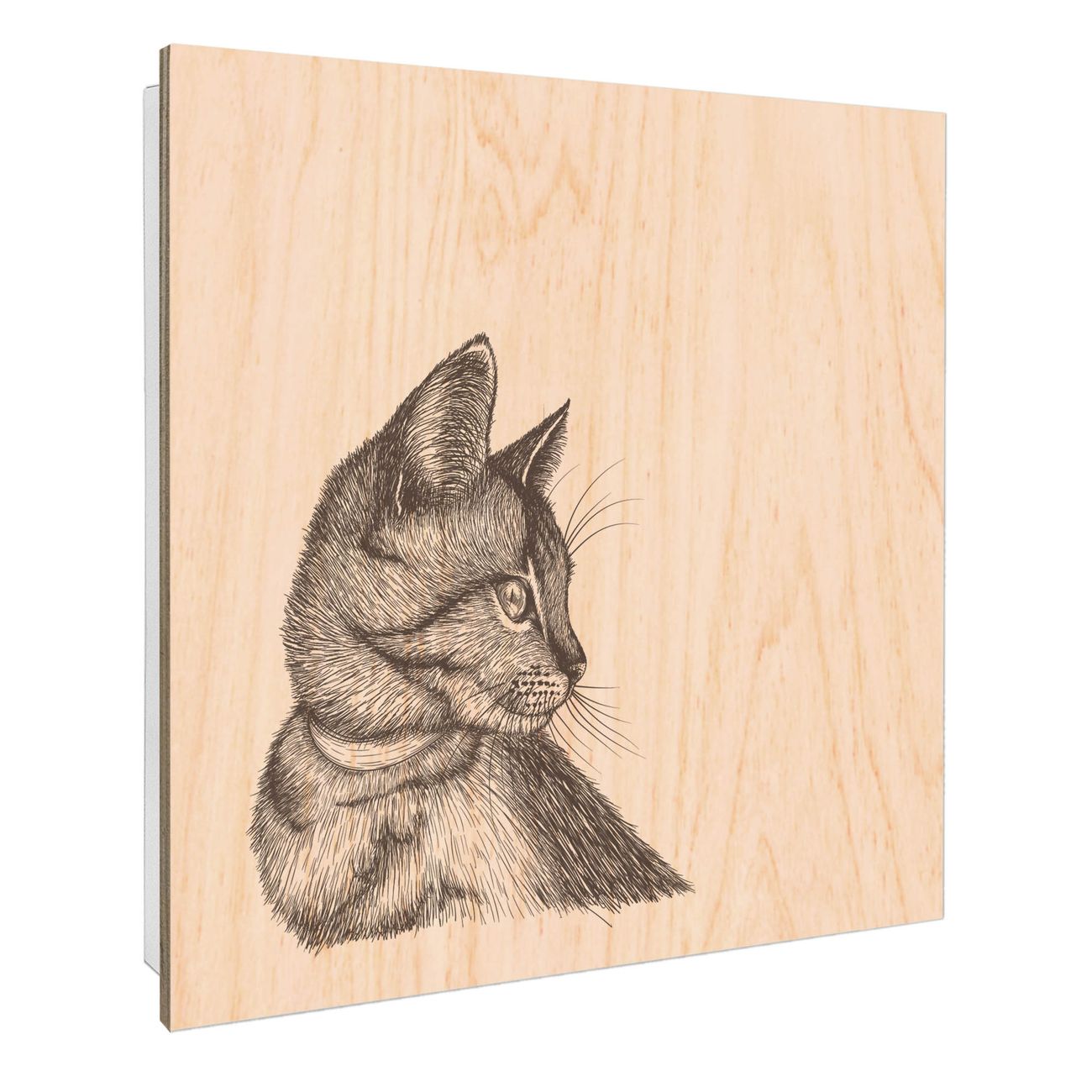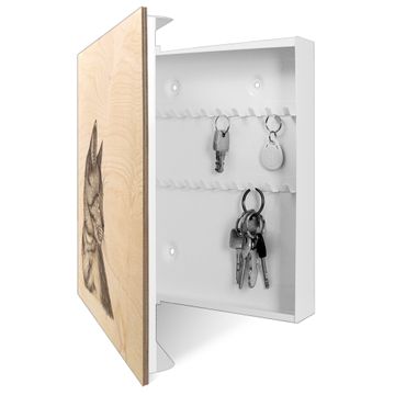 Schlüsselkasten mit Holzfront - Design Schlüsselbox Motiv Katzenillustration