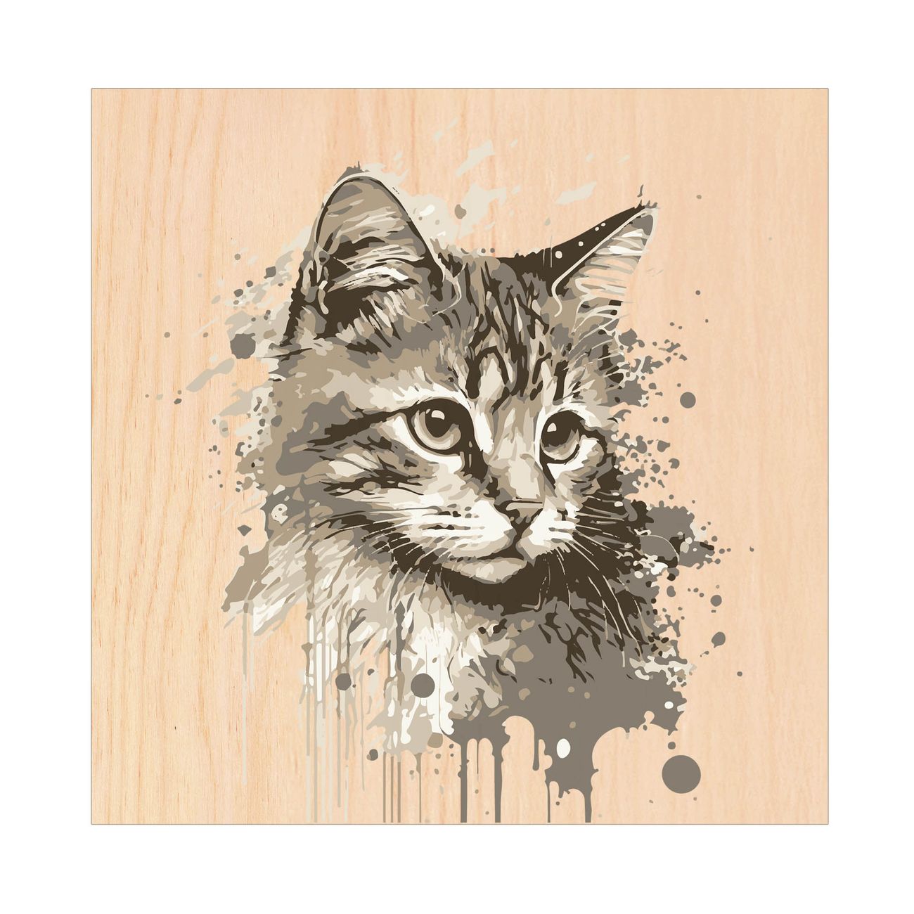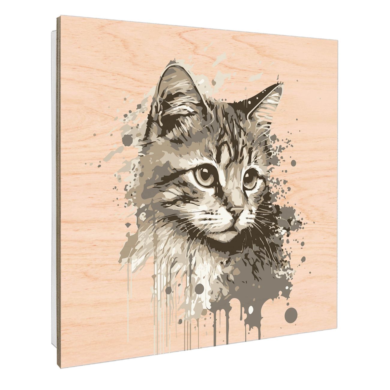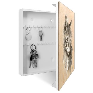 Schlüsselkasten mit Holzfront - Design Schlüsselbox Motiv Katzenportrait in Aquarell 2