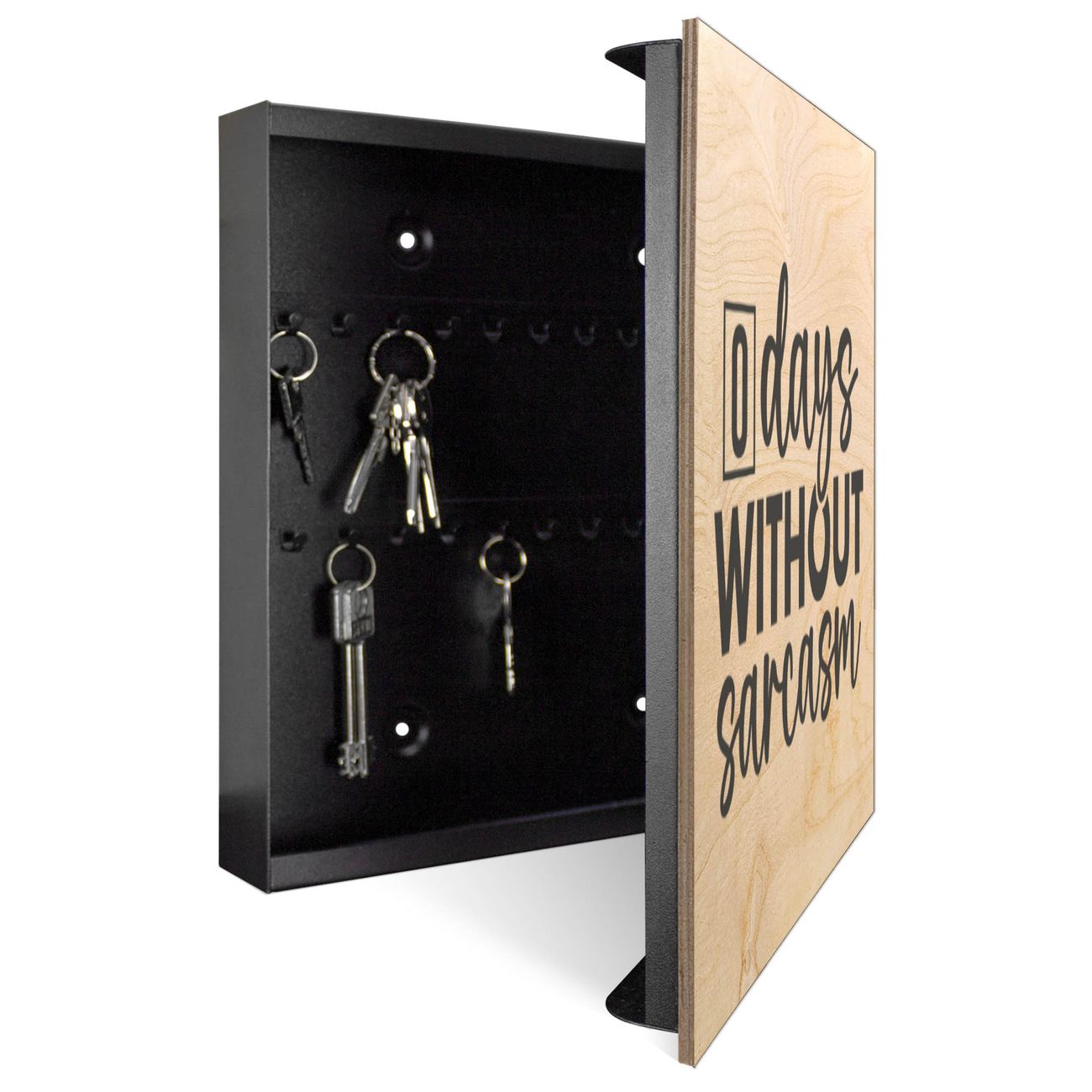 Schlüsselkasten mit Holzfront - Design Schlüsselbox Motiv Kein Tag ohne Sarkasmus
