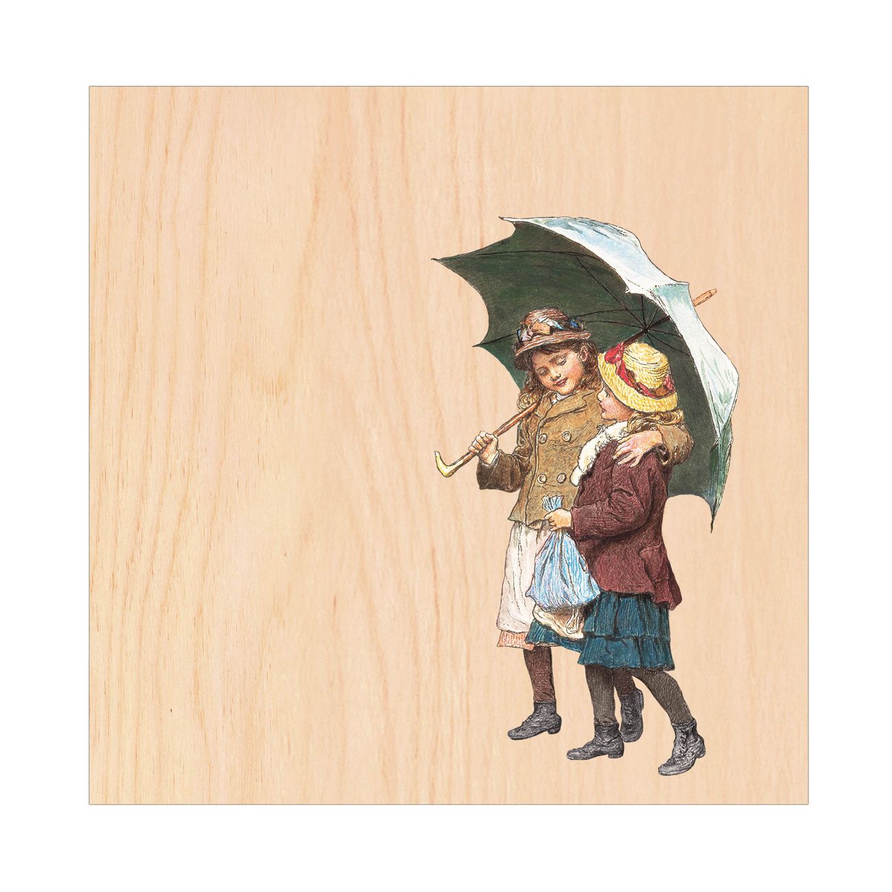 - Motiv: zwei Kinder mit Regenschirm Vintage Nr. 13382