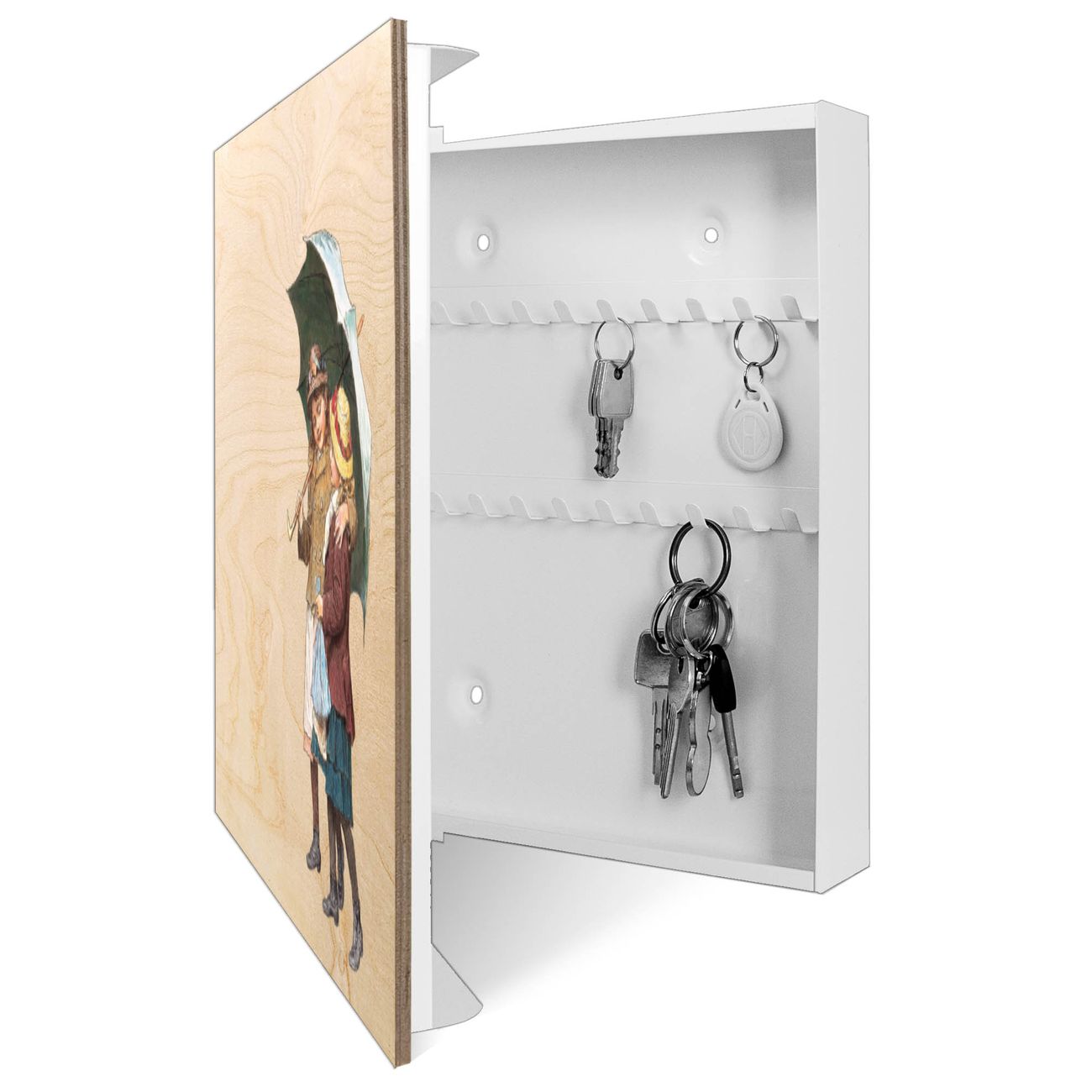 Schlüsselkasten mit Holzfront - Design Schlüsselbox Motiv Kindliche Nostalgie