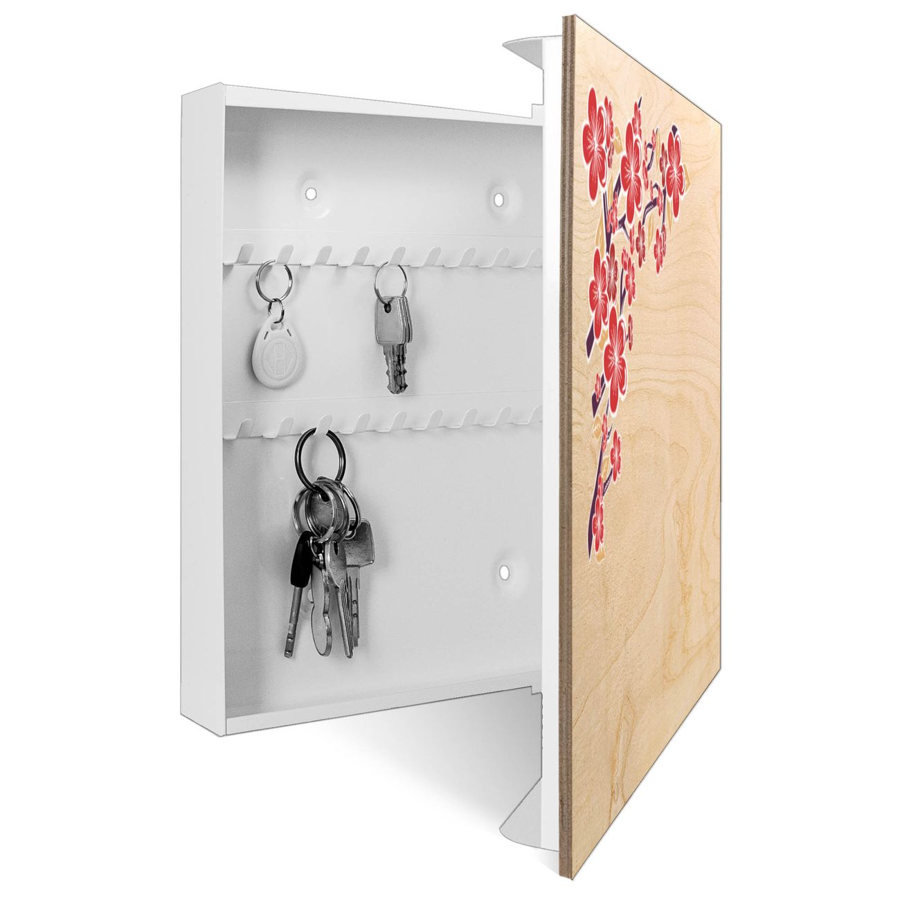 Schlüsselkasten mit Holzfront - Design Schlüsselbox Motiv Kirschblütenmuster