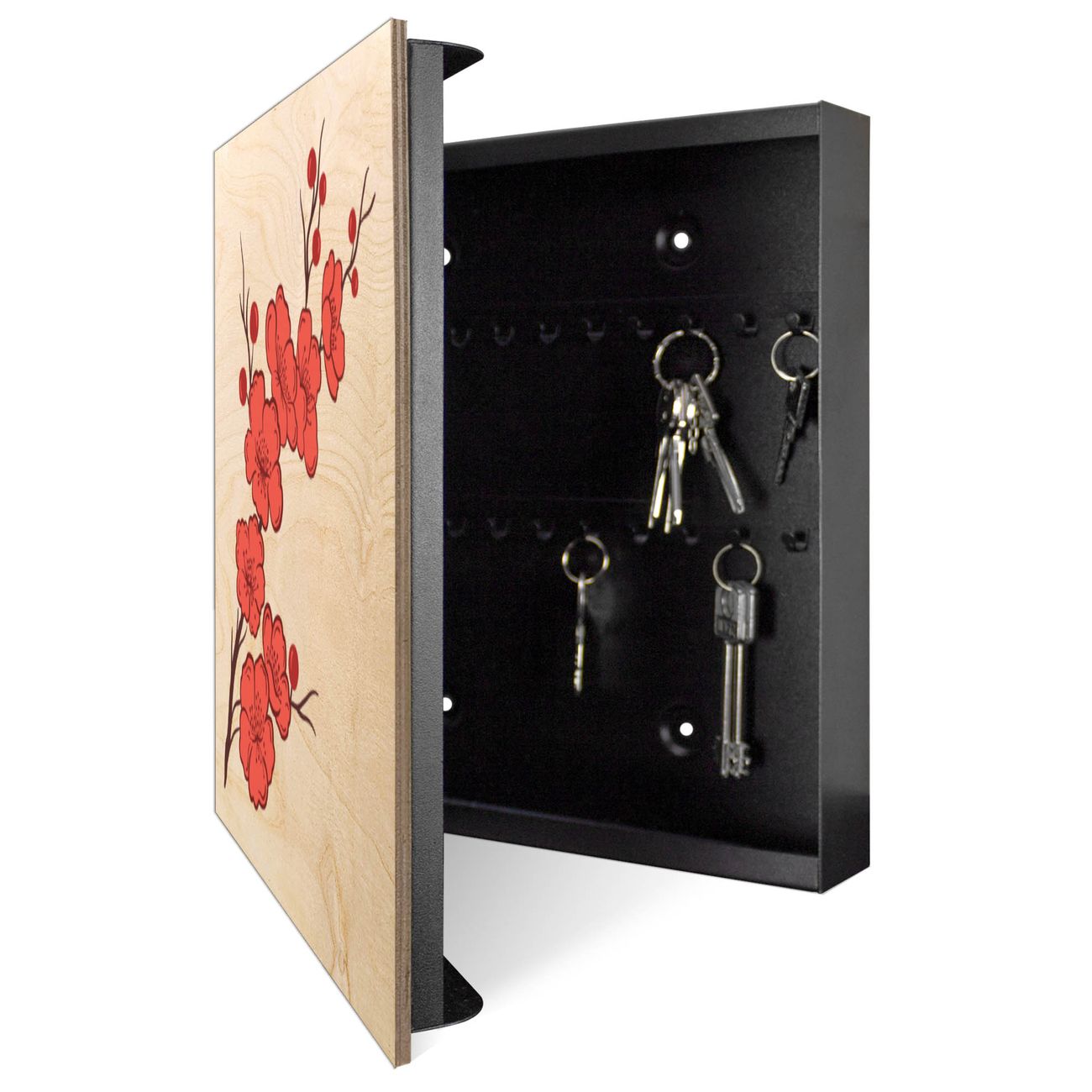 Schlüsselkasten mit Holzfront - Design Schlüsselbox Motiv Kirschblütenzweig