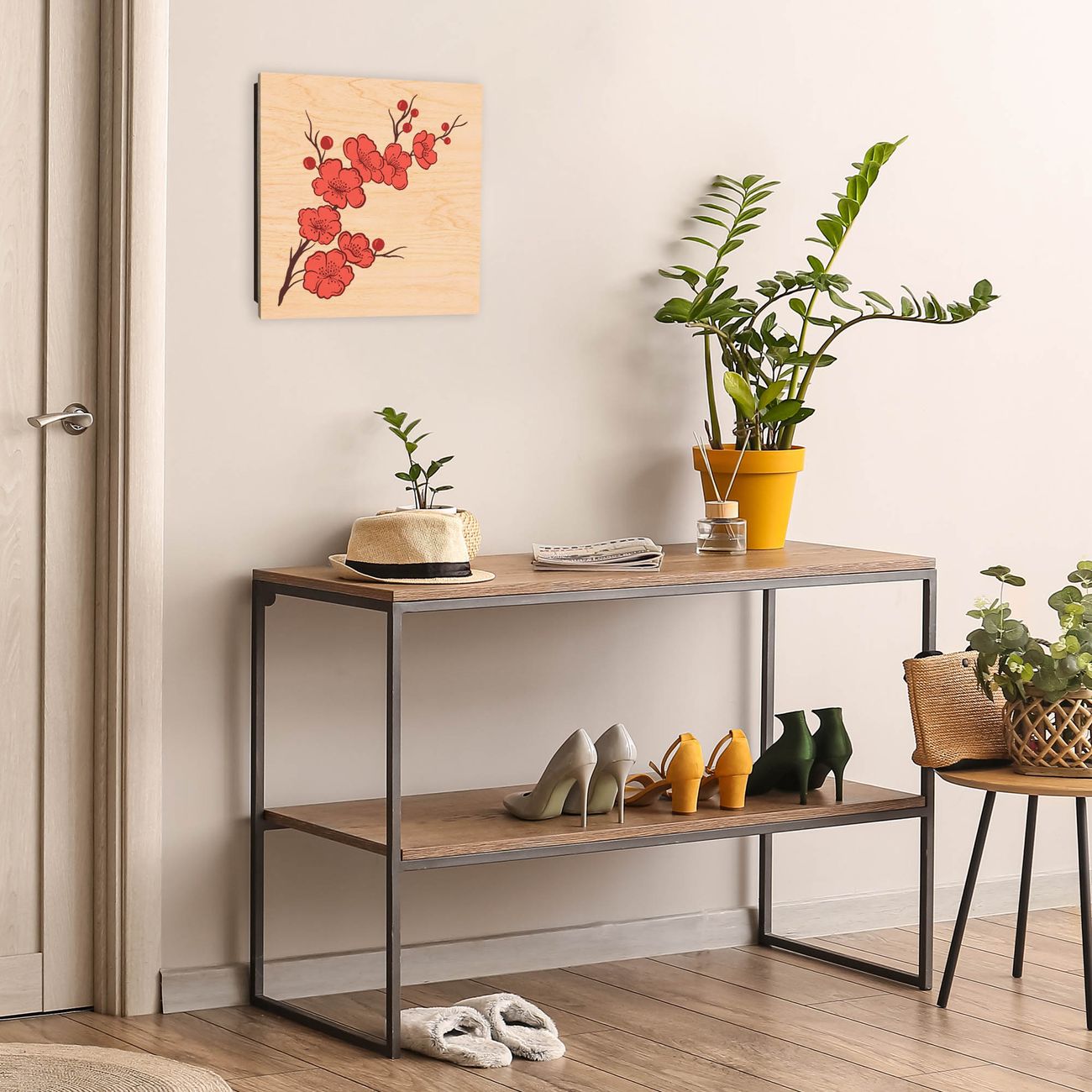 Bringe Ordnung und Eleganz in deinen Eingangsbereich mit dem banjado Schlüsselkasten Motiv Motiv Kirschblütenzweig. Die moderne Schlüsselbox kombiniert funktionales Design mit hochwertiger Verarbeitung und wird so zu einem echten Hingucker in Flur, Büro oder Ferienwohnung. ✅ Stilvolle Schlüsselaufbewahrung mit moderner Holzfront im Motiv Motiv Kirschblütenzweig Der Design-Schlüsselkasten Motiv Motiv Kirschblütenzweig bietet Platz für bis zu 50 Schlüssel, die auf 5 stabilen Reihen mit je 10 Haken übersichtlich verstaut werden. Mit seinen kompakten Maßen von 30 x 30 x 5 cm passt die Schlüsselbox perfekt auch in kleinere Räume. Der schwarz lackierte Korpus mit dem Scharnier auf der linken Seite harmoniert mit der bedruckten Holzfront und fügt sich nahtlos in jedes Wohnambiente ein. Ob als Schlüsselorganizer für Zuhause oder als praktische Lösung für Büros, Praxen und Gewerbe - der banjado Schlüsselkasten sorgt für Ordnung und Übersicht. Durch die klare Strukturierung der Haken lassen sich auch viele Schlüssel problemlos verwalten. Die Schlüsselbox Motiv Motiv Kirschblütenzweig zur Wandmontage wird inklusive Befestigungsmaterial geliefert und ist schnell angebracht. So hast du deine Schlüssel jederzeit griffbereit und zugleich stilvoll verstaut. Mit diesem banjado Schlüsselkasten Motiv Motiv Kirschblütenzweig kombinierst du praktische Aufbewahrung mit stilvollem Wohndesign. Ob privat oder geschäftlich - die Schlüsselbox sorgt für mehr Ordnung, Übersicht und ein wohnliches Ambiente.Vorteile im Überblick
