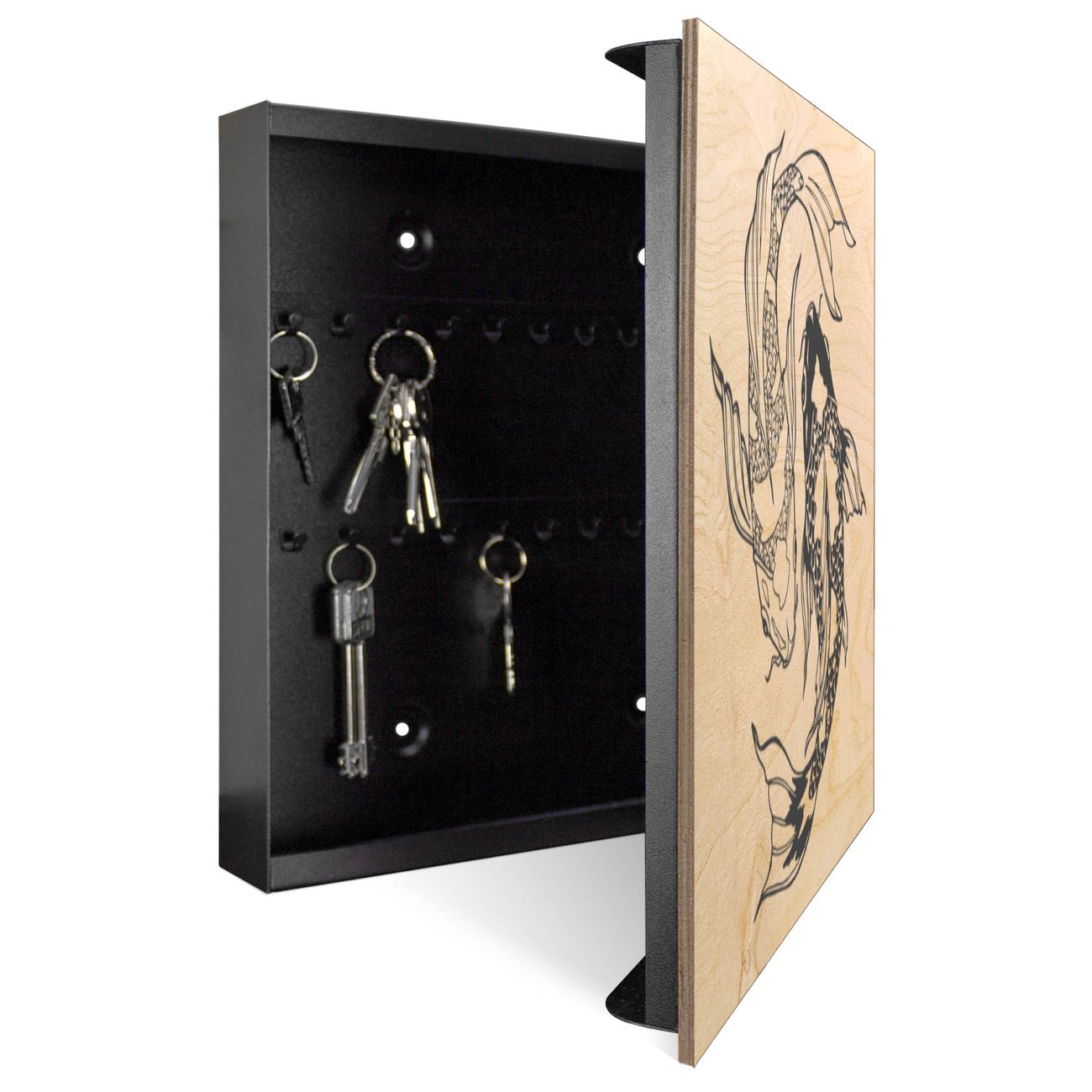 Schlüsselkasten mit Holzfront - Design Schlüsselbox Motiv Koi Paar 3