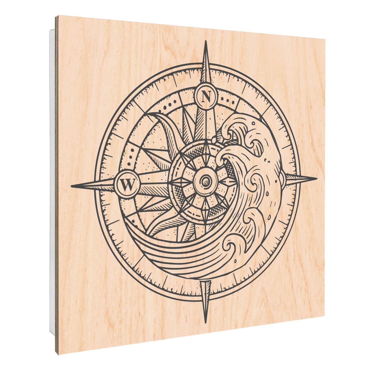 Schlüsselkasten mit Holzfront - Design Schlüsselbox Motiv Kompass 2