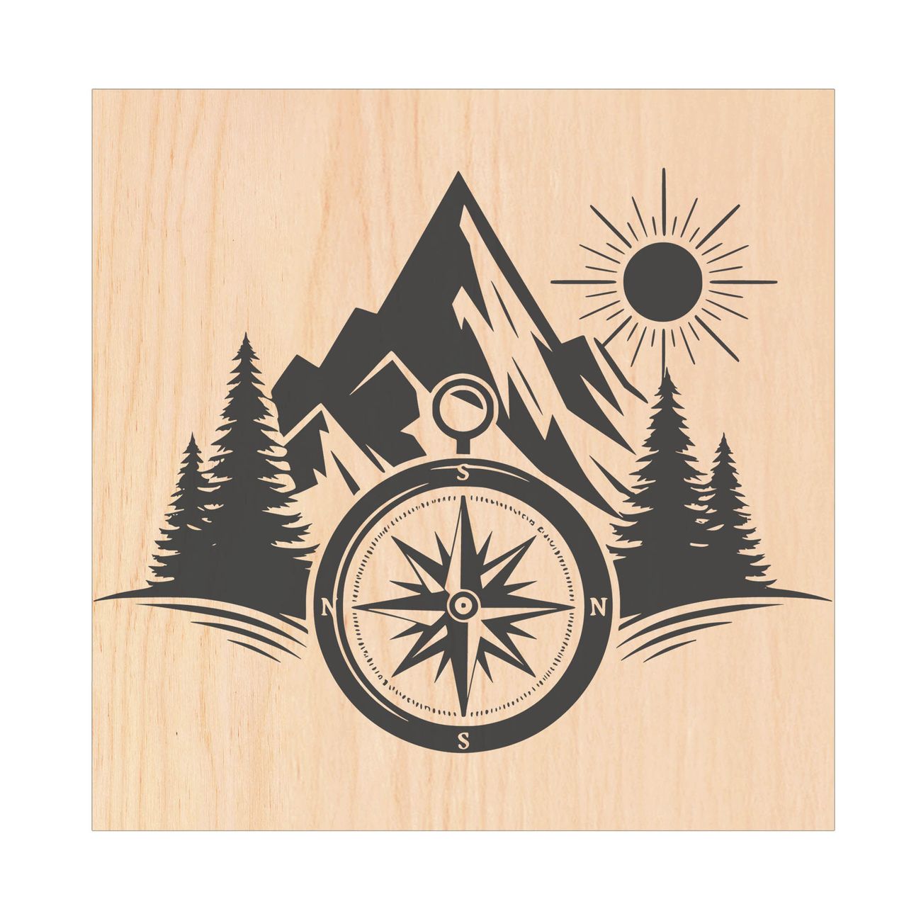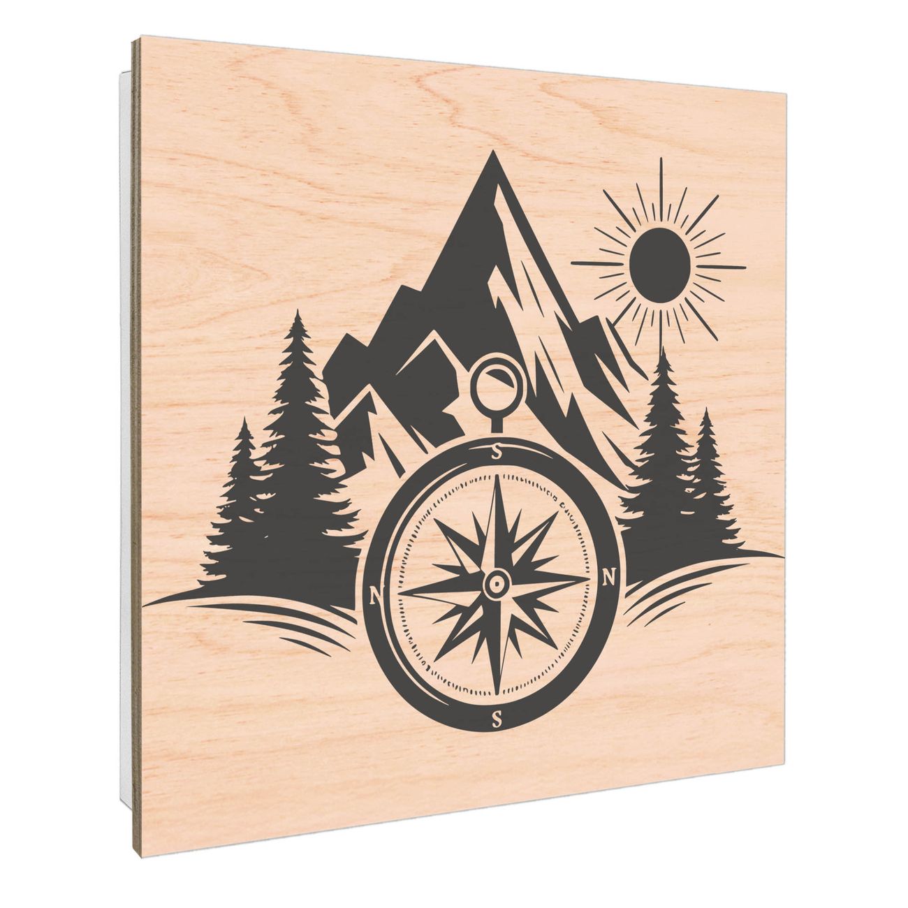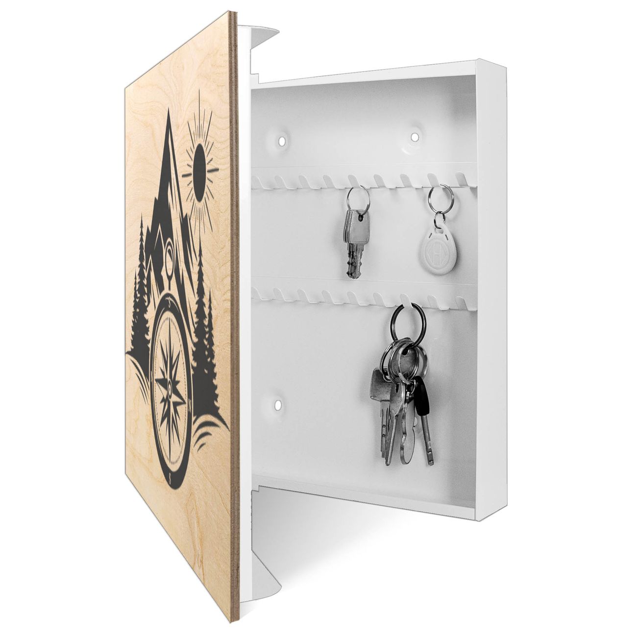 Schlüsselkasten mit Holzfront - Design Schlüsselbox Motiv Kompass in der Wildnis